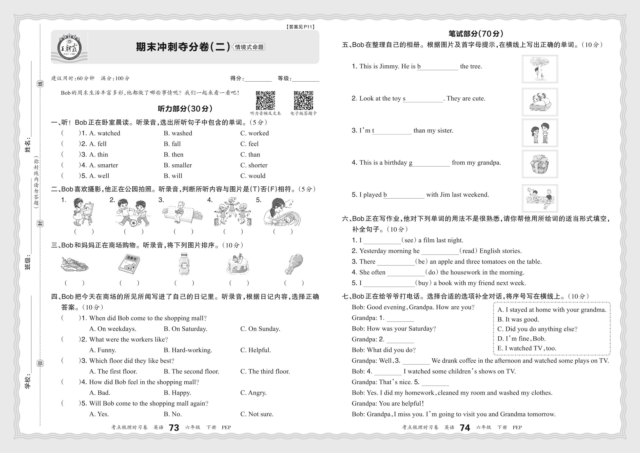 2024春下册六年级英语人教PEP版 期末冲刺夺分卷(二)