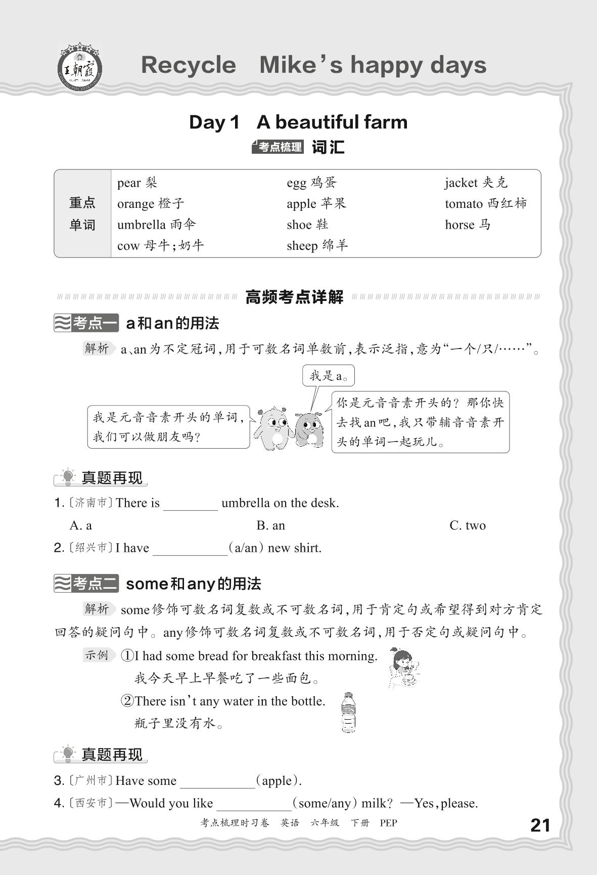 2024春下册六年级英语人教PEP版 考点梳理手册——Recycle Mike's happy days