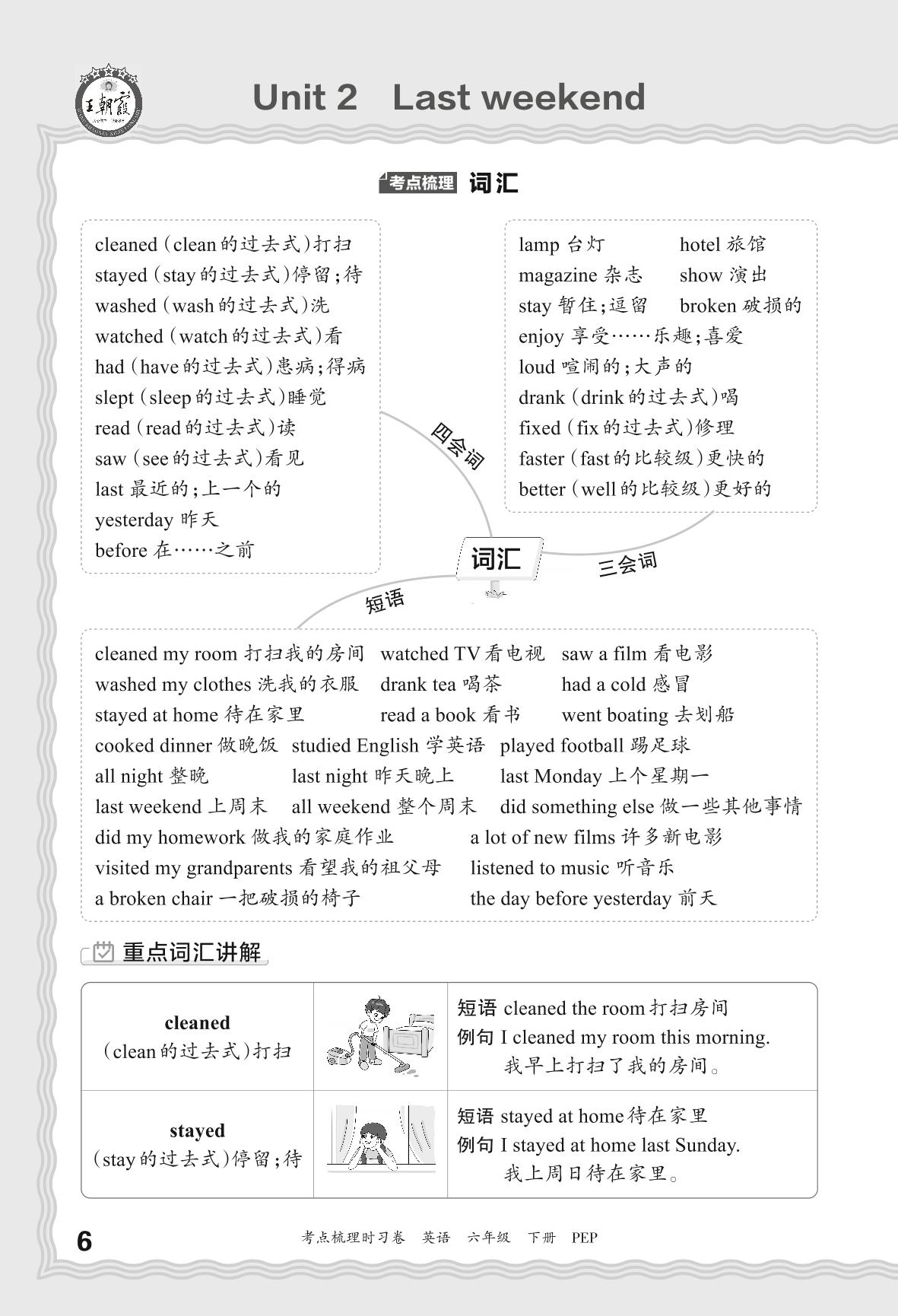 2024春下册六年级英语人教PEP版 考点梳理手册——Unit 2 Last weekend