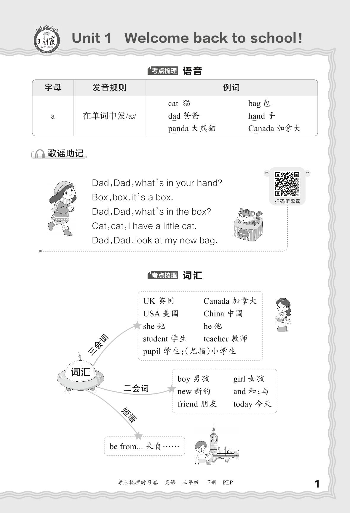 2024春下册三年级英语人教PEP版 考点梳理手册——Unit 1 Welcome back to school!