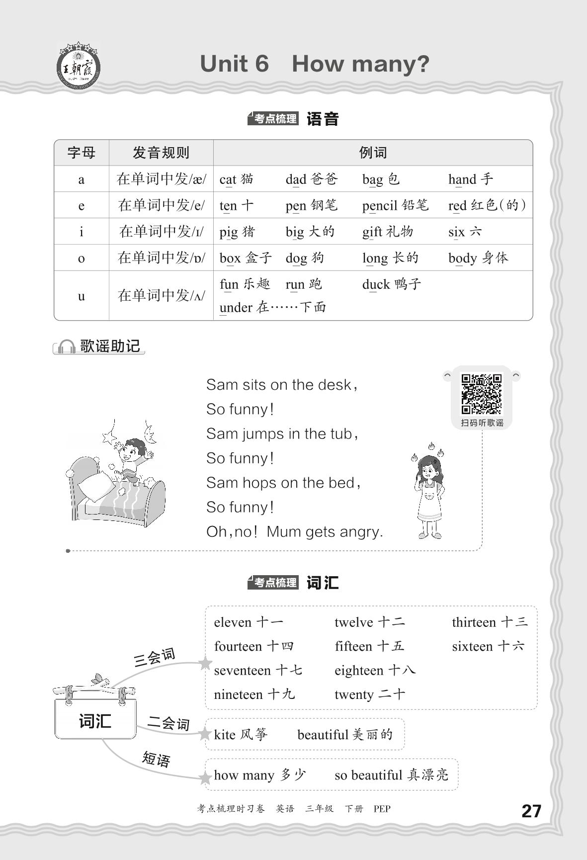 2024春下册三年级英语人教PEP版 考点梳理手册——Unit 6 How many