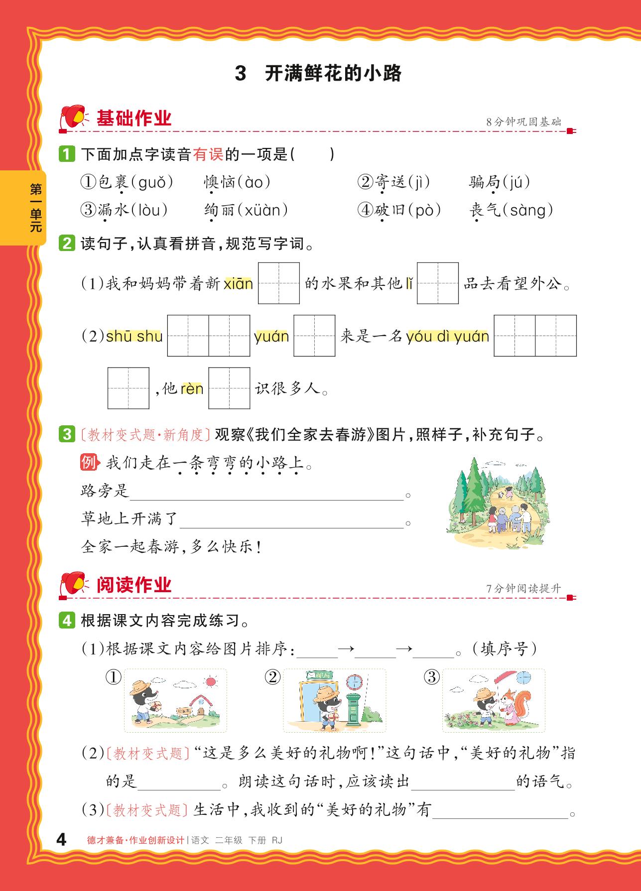 2024春下册二年级语文人教版 第一单元 春天——3. 开满鲜花的小路_R240117104550718