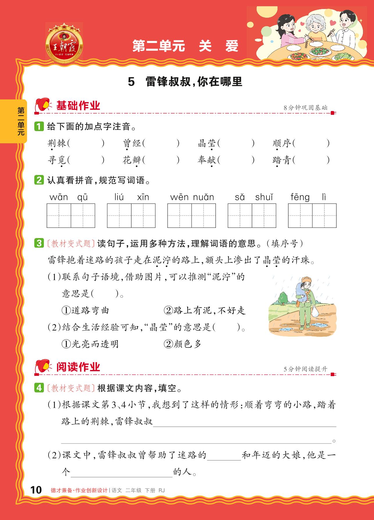 2024春下册二年级语文人教版 第二单元 关爱——5. 雷锋叔叔,你在哪里_R240117104551746