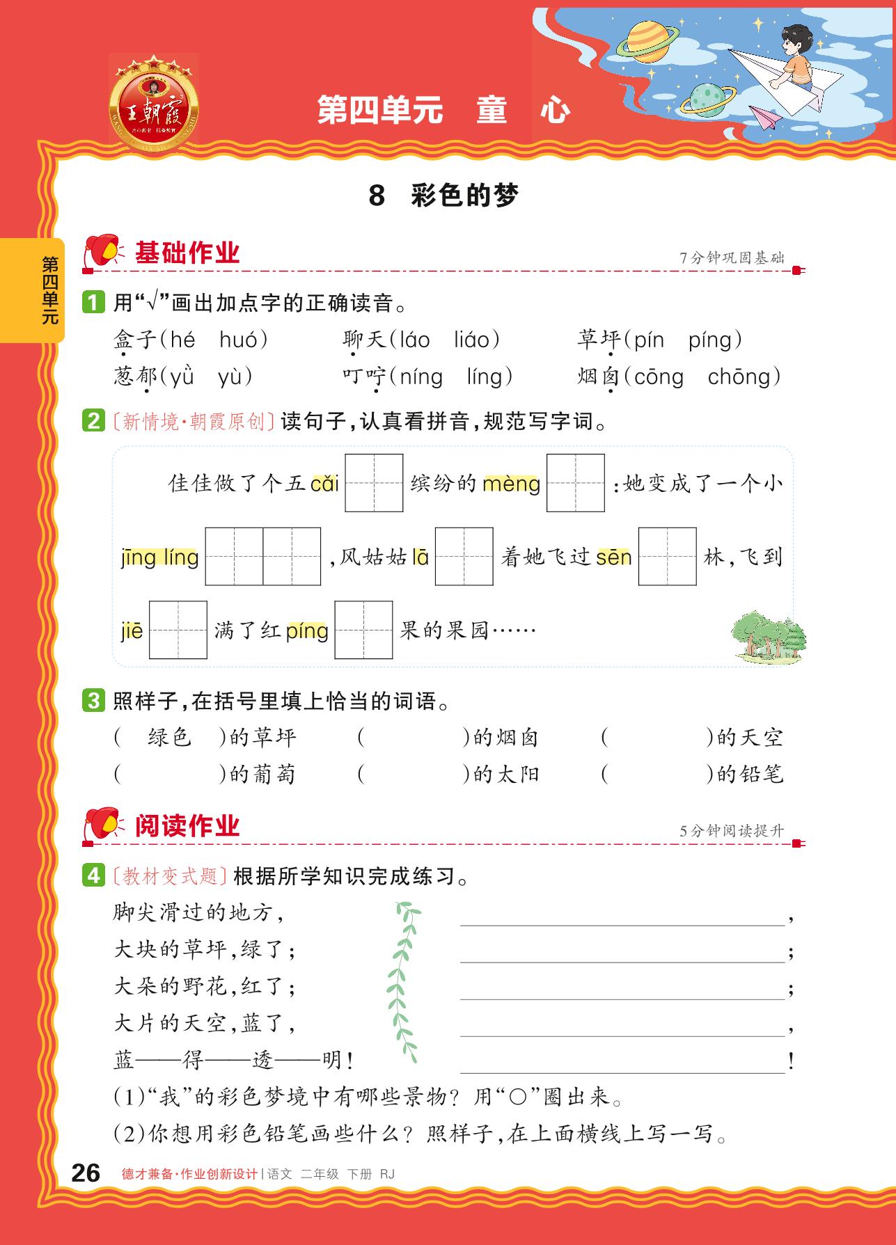 2024春下册二年级语文人教版 第四单元 童心——8. 彩色的梦_R240117104556277