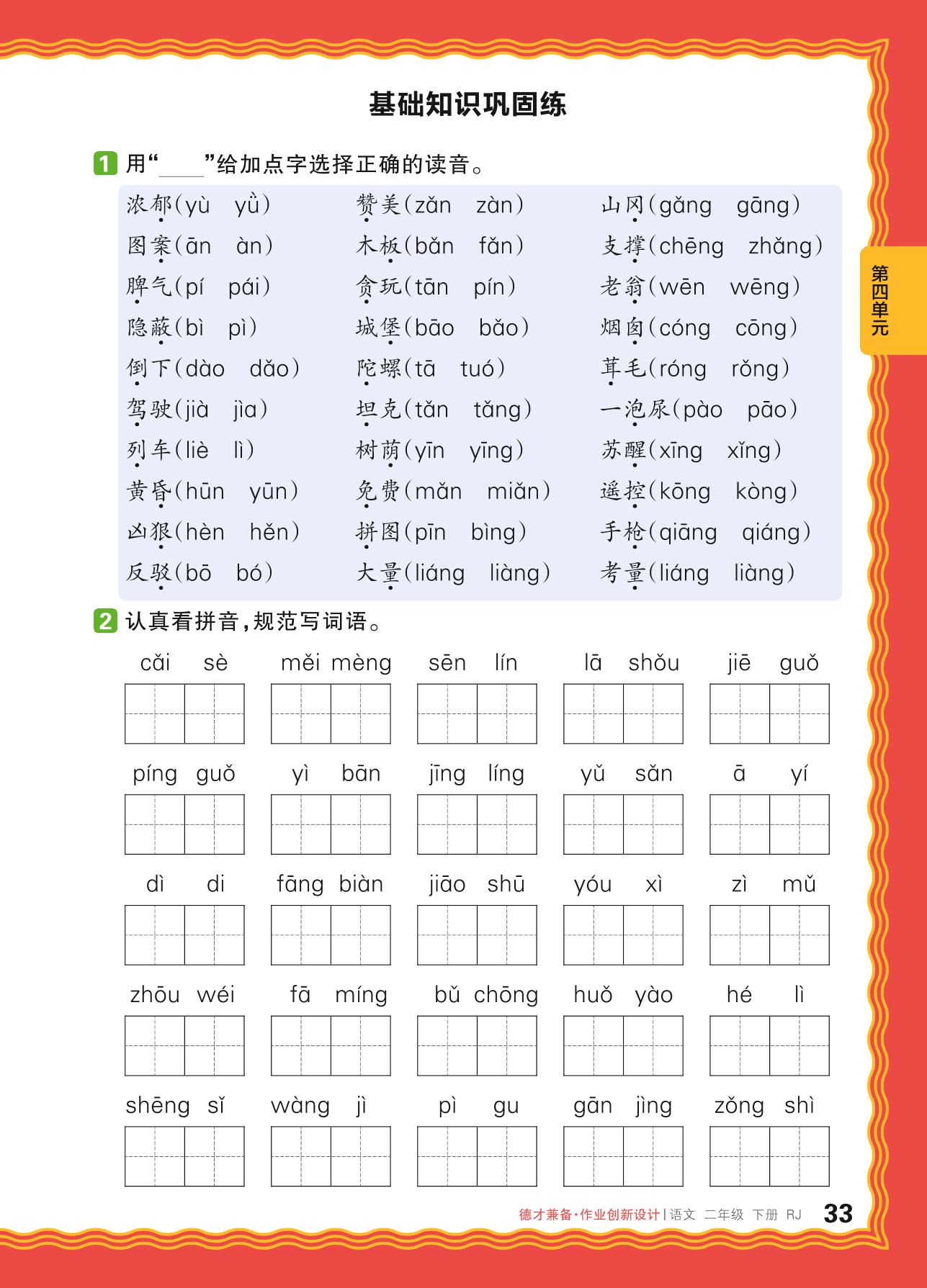 2024春下册二年级语文人教版 第四单元 童心——基础知识巩固练