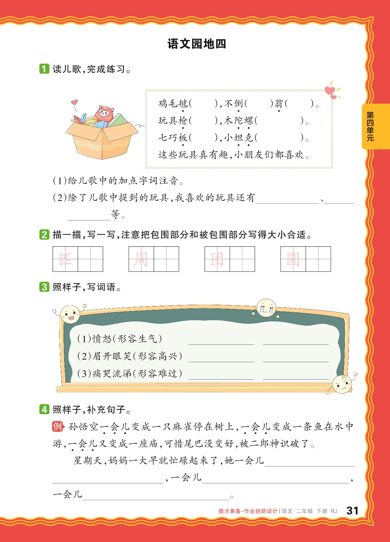 2024春下册二年级语文人教版 第四单元 童心——语文园地四