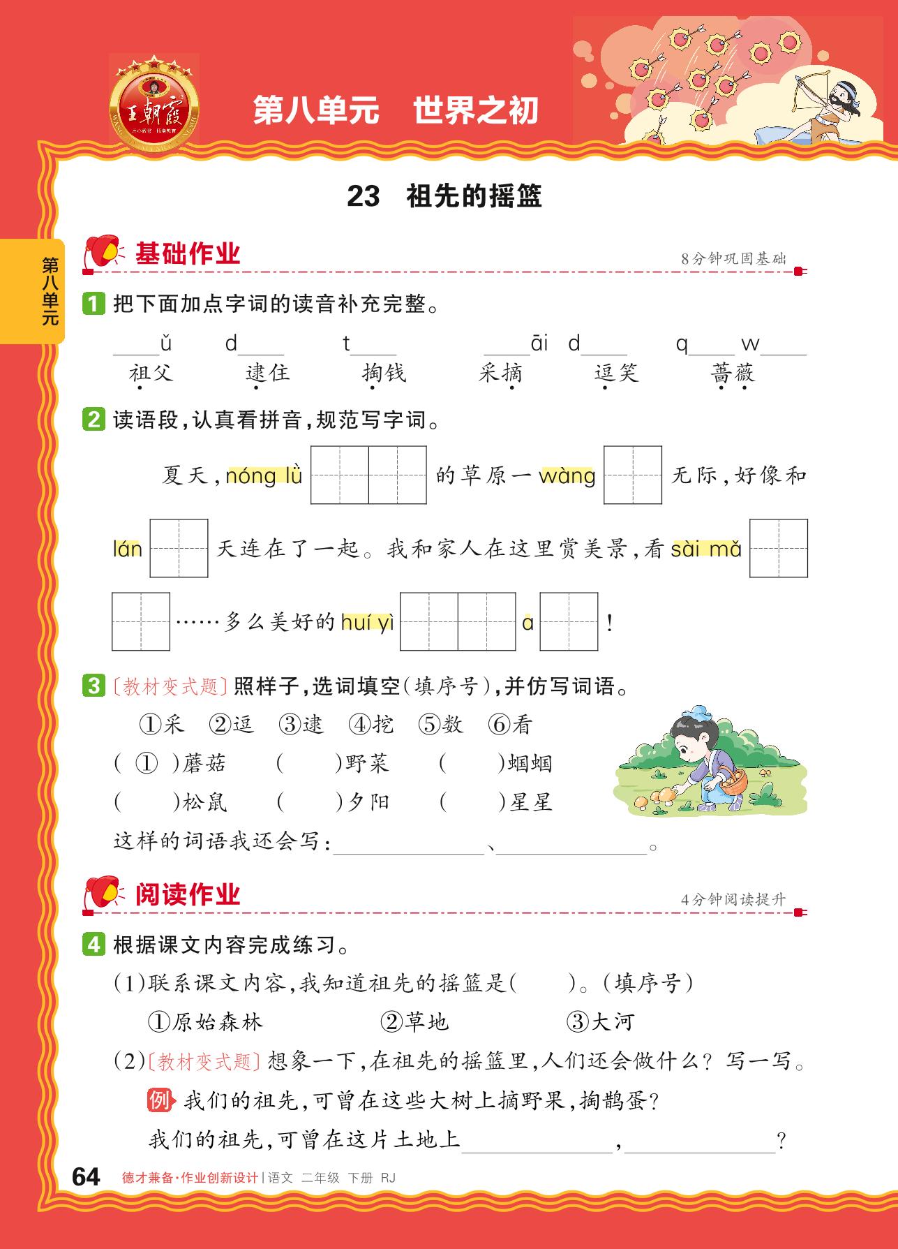 2024春下册二年级语文人教版 第八单元 世界之初——23. 祖先的摇篮_R240117104604491