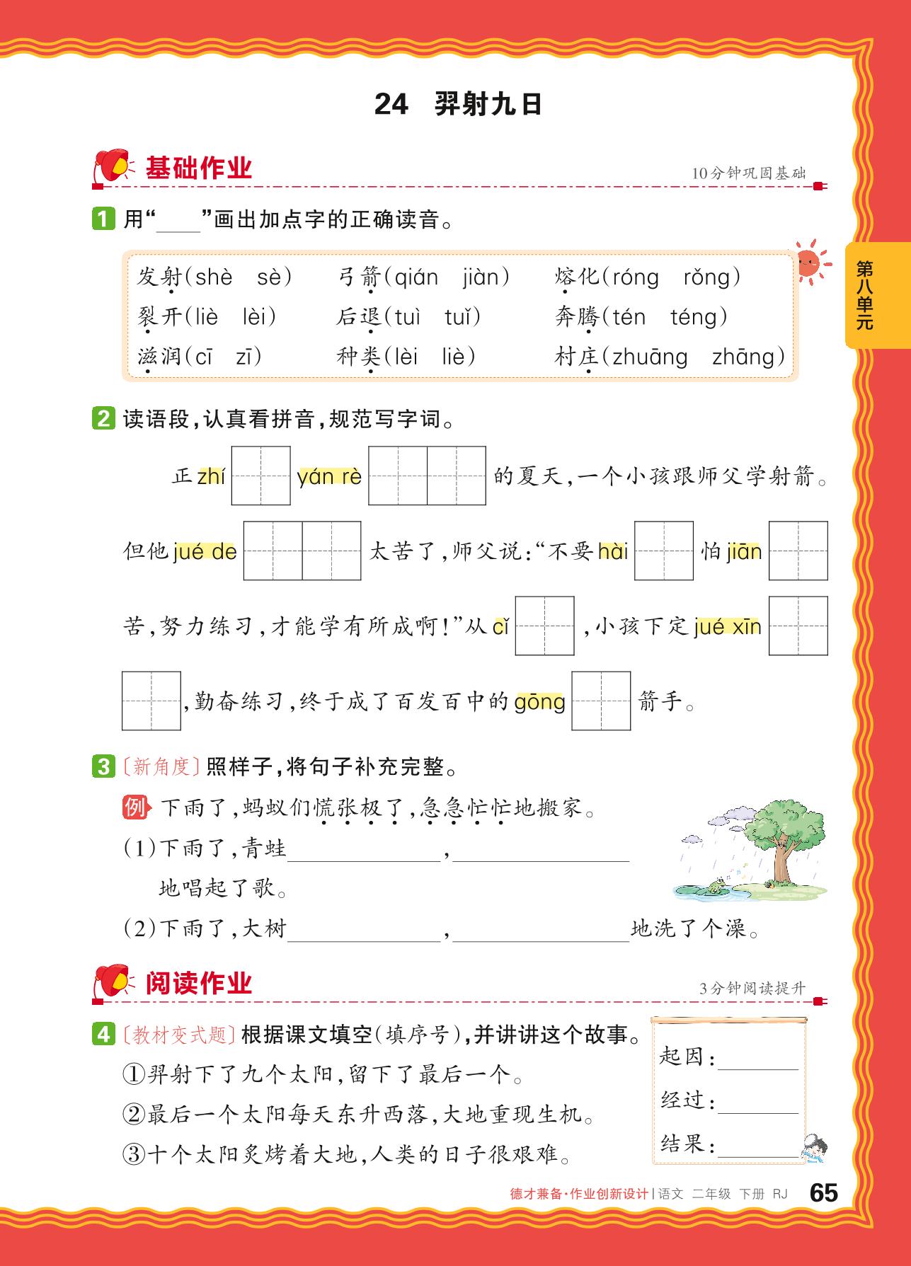 2024春下册二年级语文人教版 第八单元 世界之初——24. 羿射九日_R240117104604145