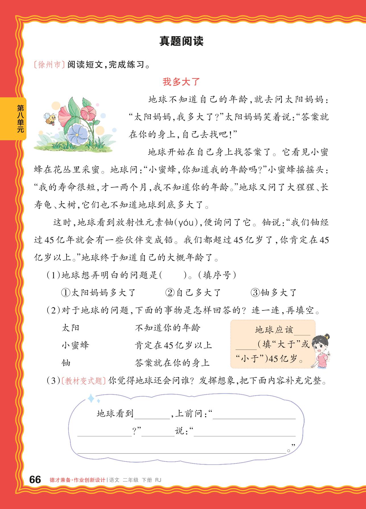 2024春下册二年级语文人教版 第八单元 世界之初——真题阅读