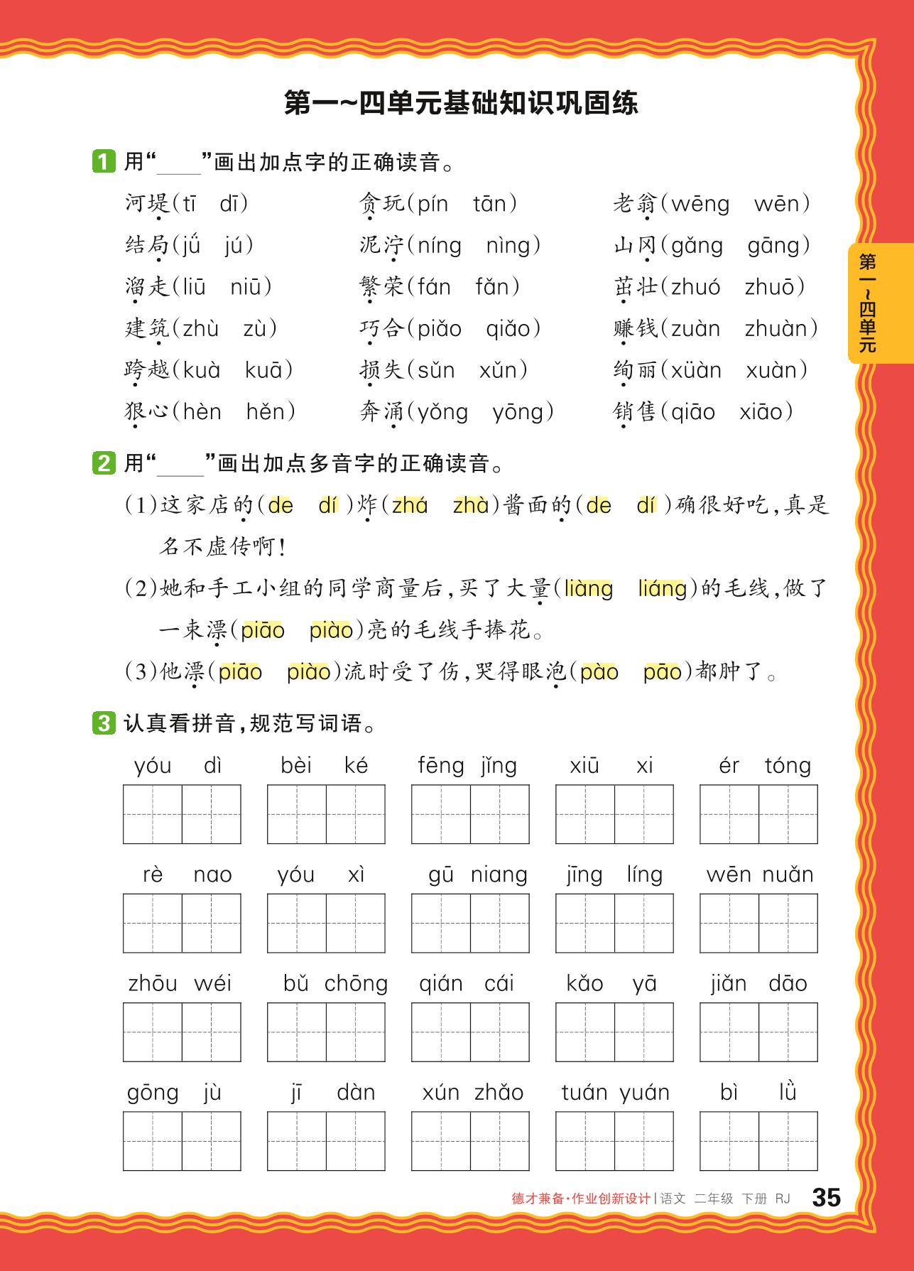 2024春下册二年级语文人教版 第一~四单元基础知识巩固练