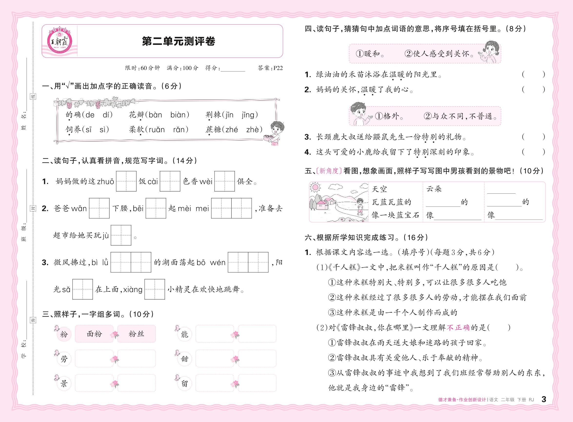 二年级语文人教版下册单元卷