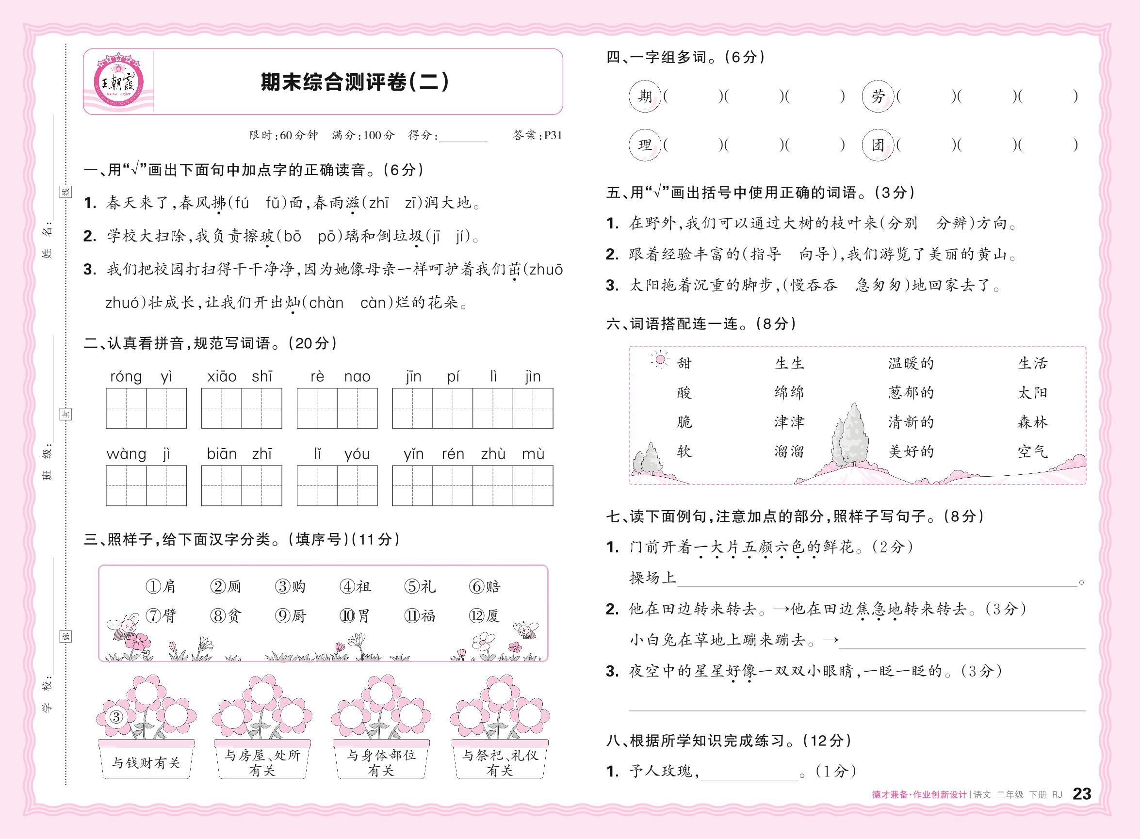 2024春下册二年级语文人教版 期末综合测评卷(二)