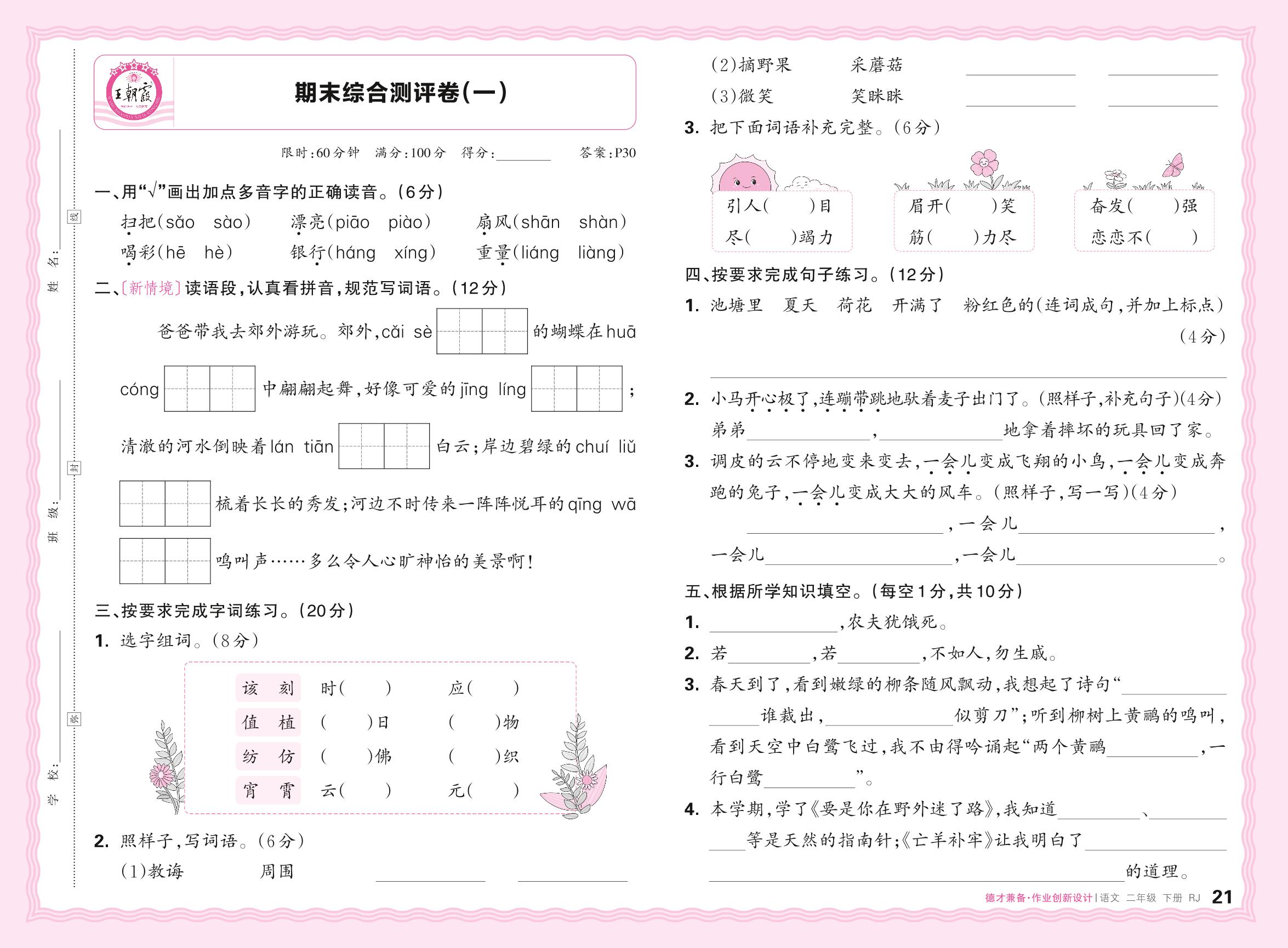 2024春下册二年级语文人教版 期末综合测评卷(一)