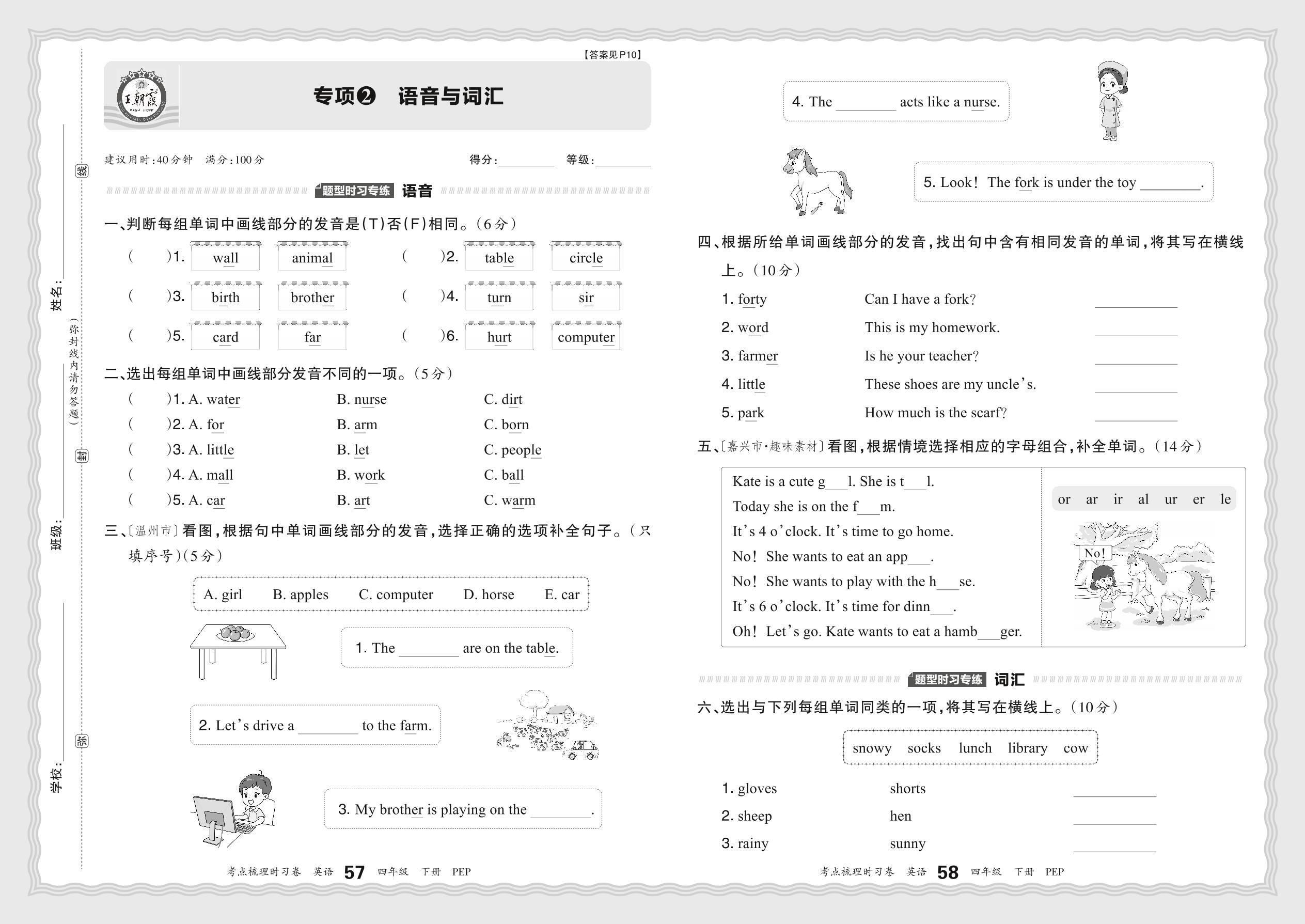 2024春下册四年级英语人教PEP版 期末专项卷KD版·语音与词汇【2】