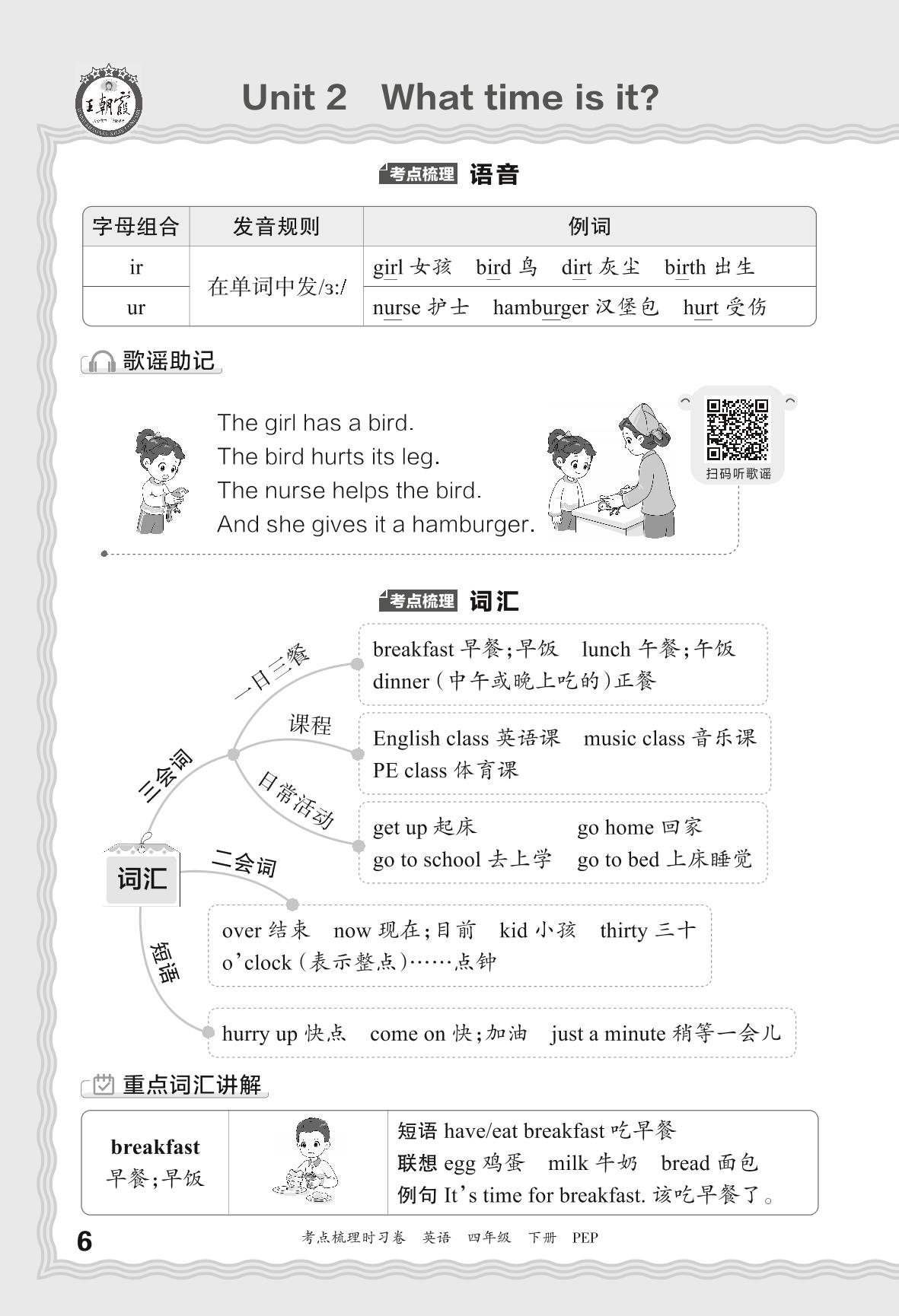 2024春下册四年级英语人教PEP版 考点梳理手册——Unit 2 What time is it