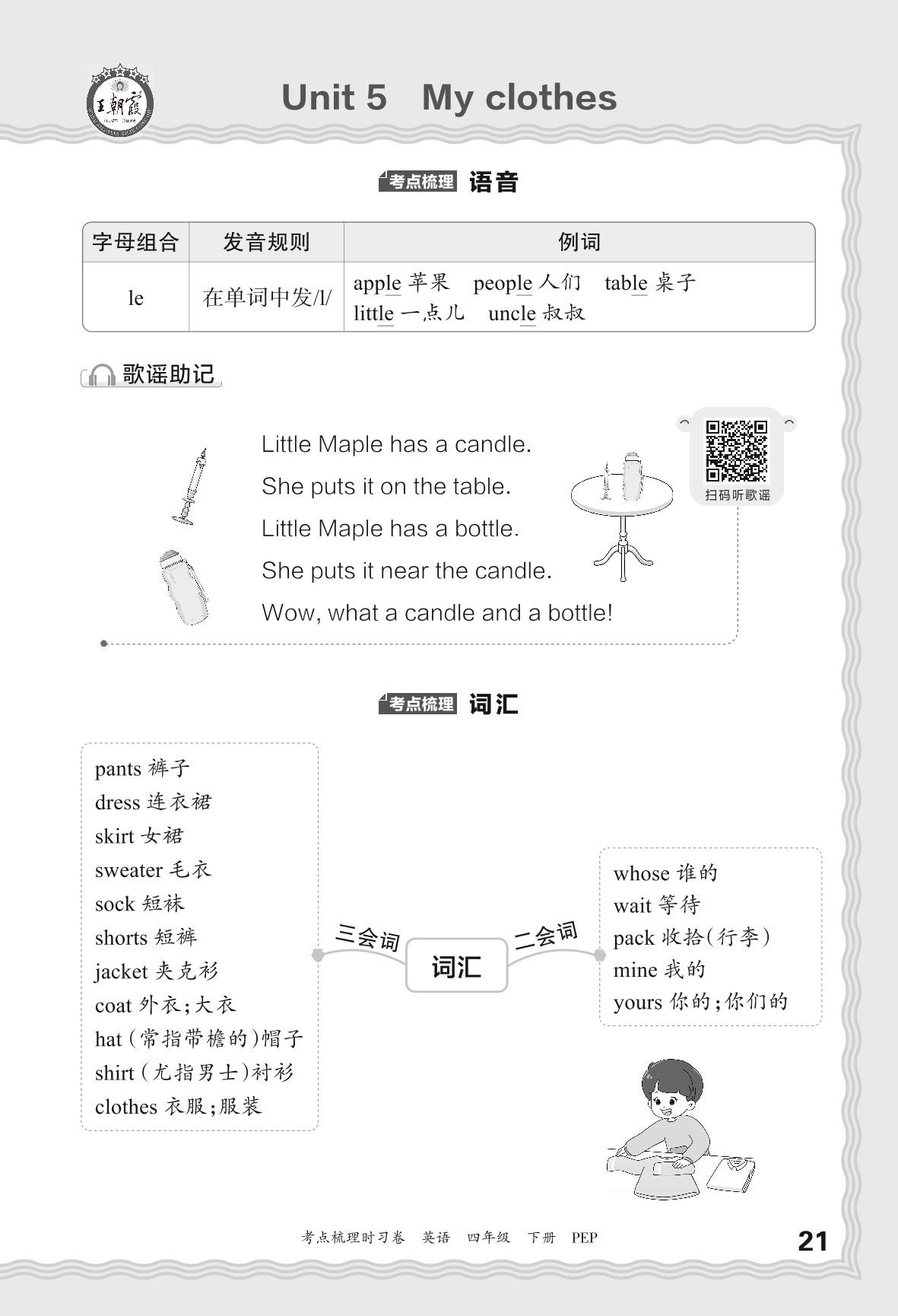 2024春下册四年级英语人教PEP版 考点梳理手册——Unit 5 My clothes