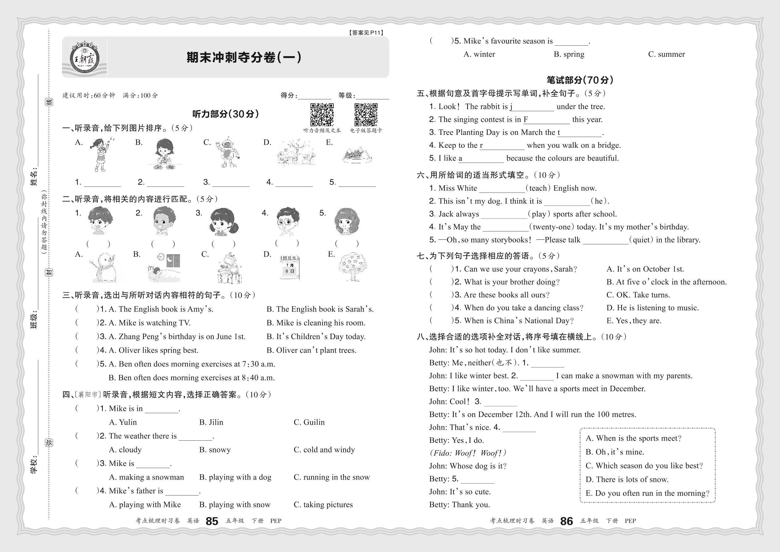 2024春下册五年级英语人教PEP版 期末冲刺夺分卷(一)
