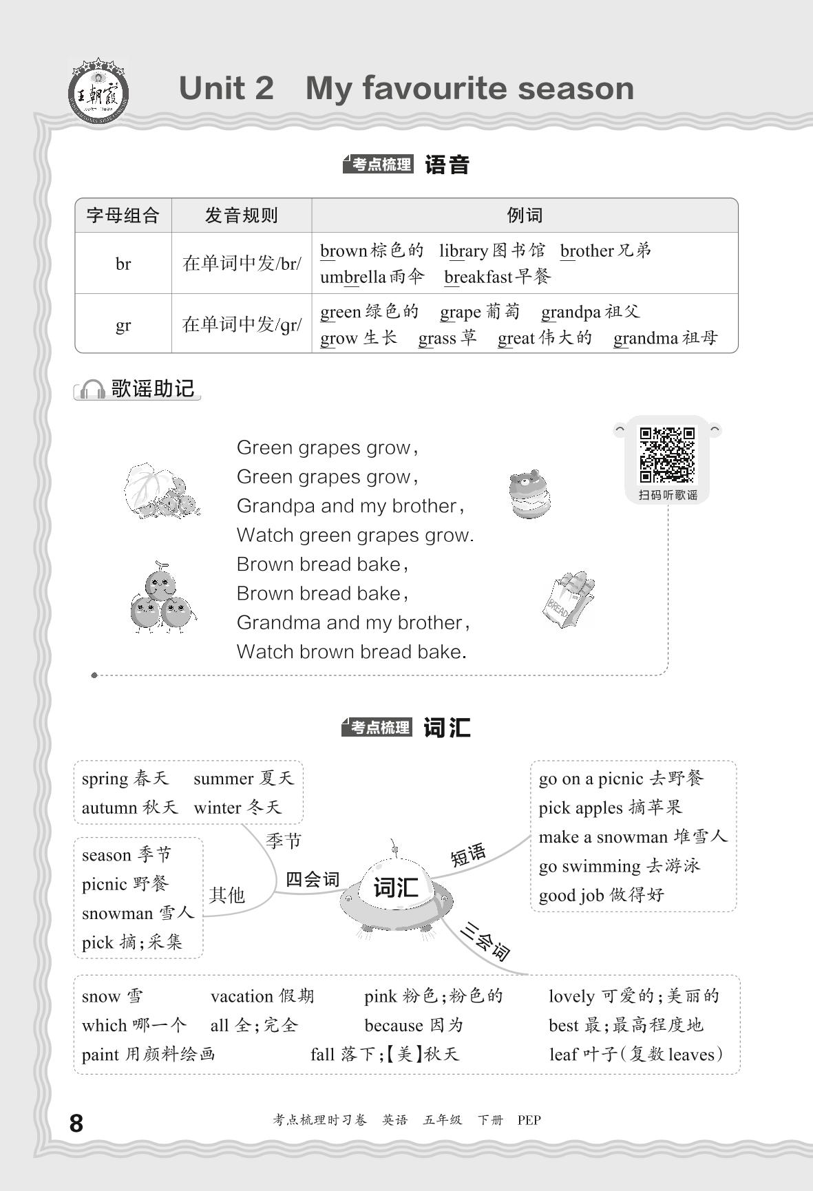 2024春下册五年级英语人教PEP版 考点梳理手册——Unit 2 My favourite season