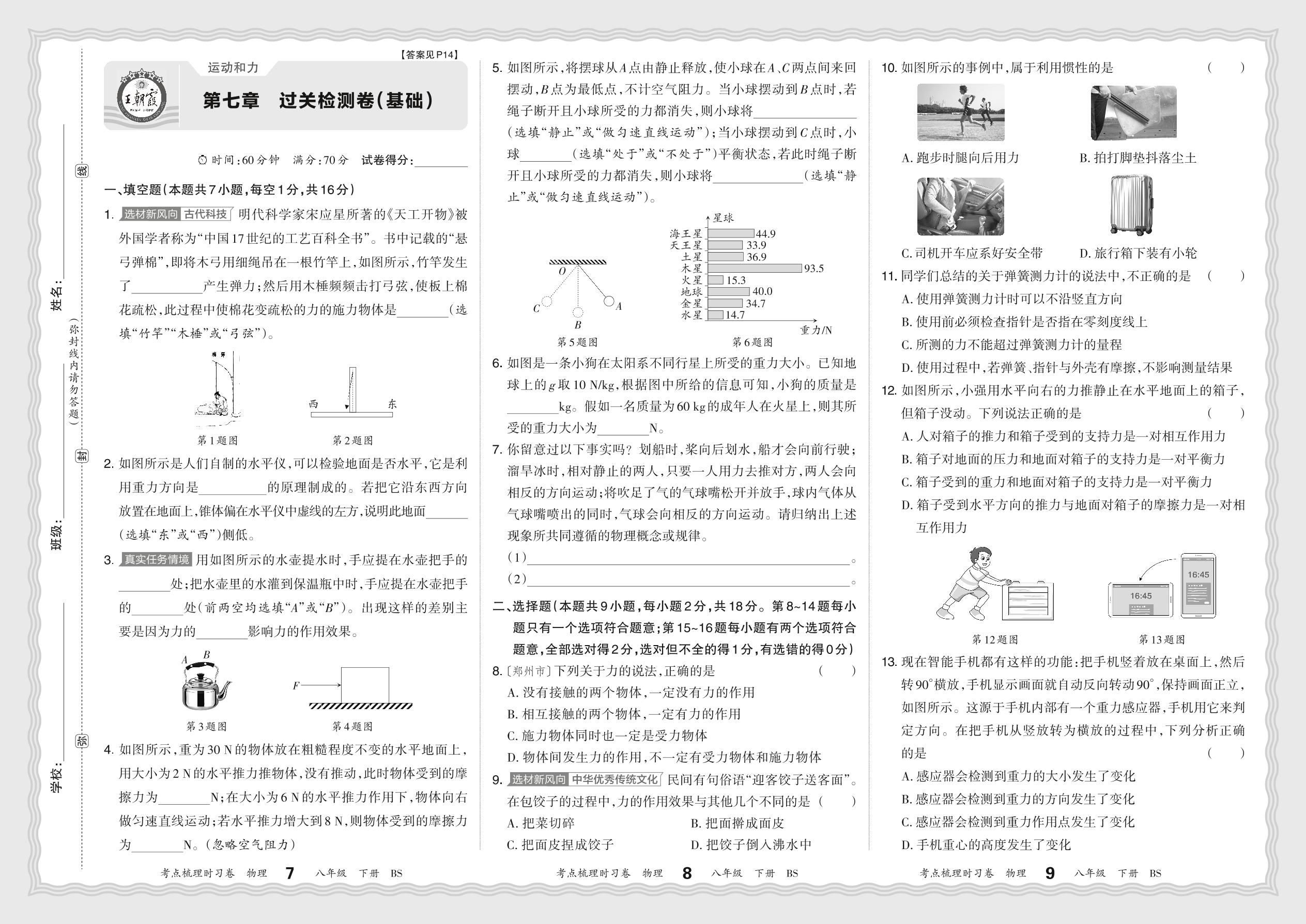 八年级物理北师版下册单元卷