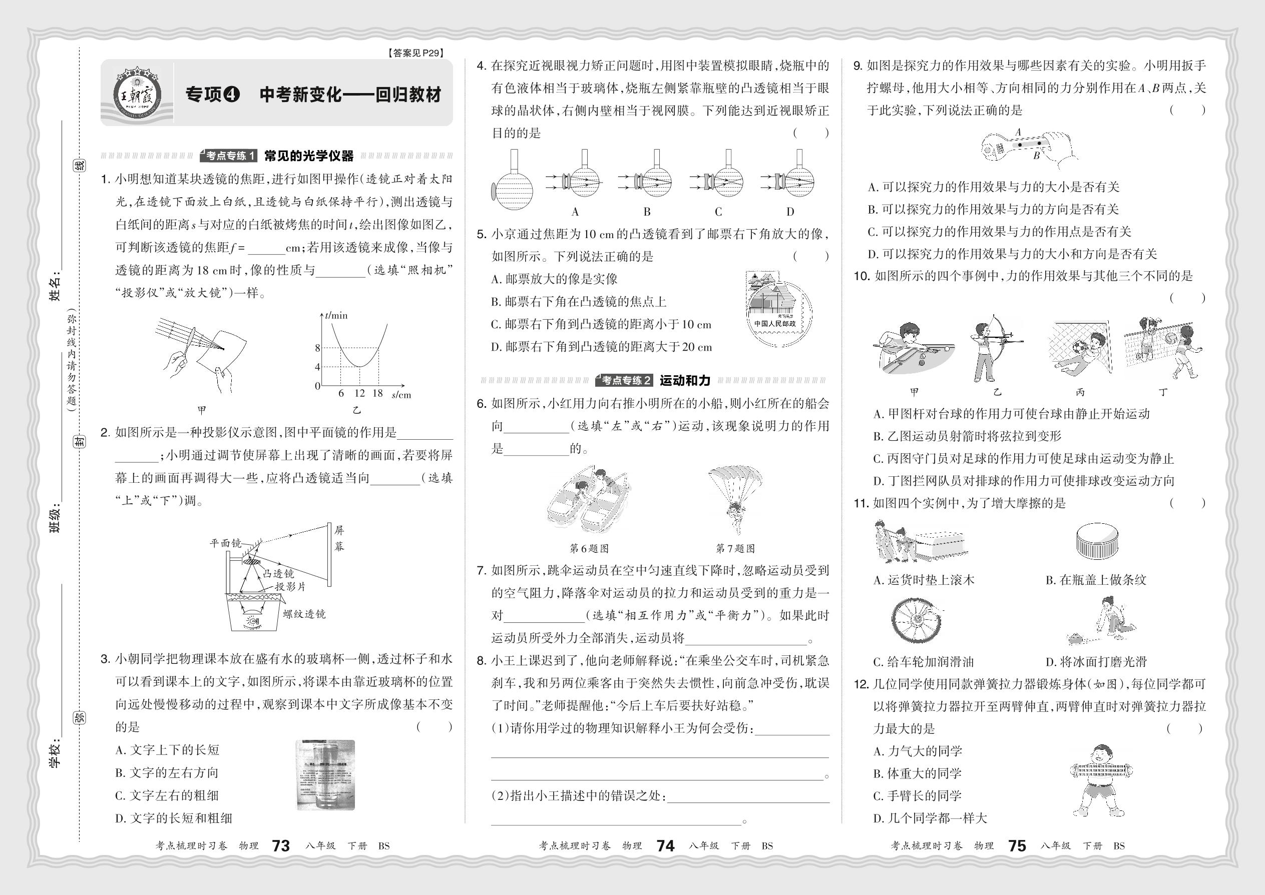 2024春下册八年级物理北师版 期末专项卷KD版·中考新变化——回归教材【4】