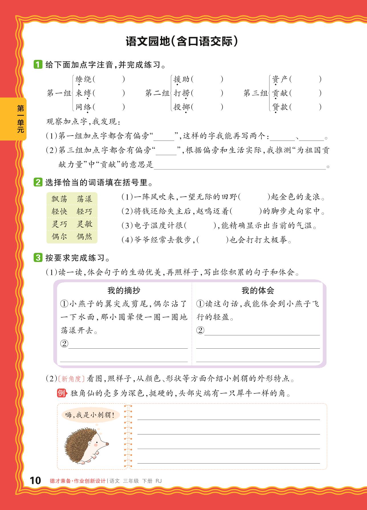 2024春下册三年级语文人教版 第一单元 可爱的生灵——语文园地(含口语交际)