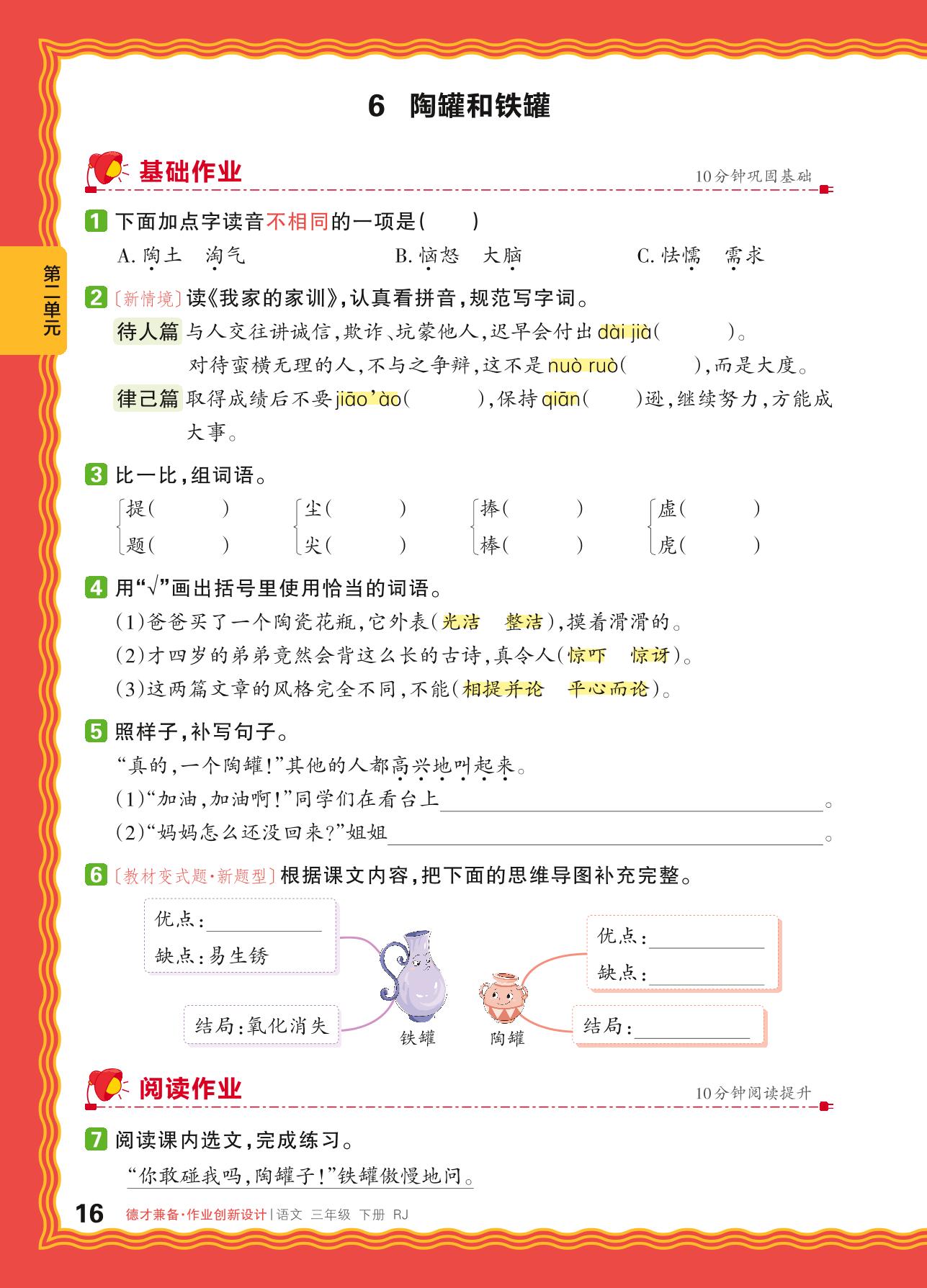 2024春下册三年级语文人教版 第二单元 寓言故事——6. 陶罐和铁罐_R240117134644703