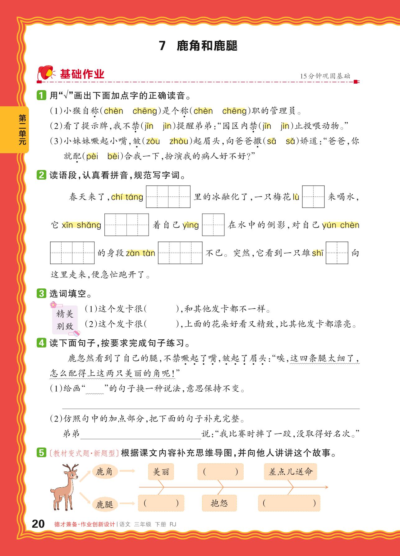 2024春下册三年级语文人教版 第二单元 寓言故事——7. 鹿角和鹿腿_R240117134645219