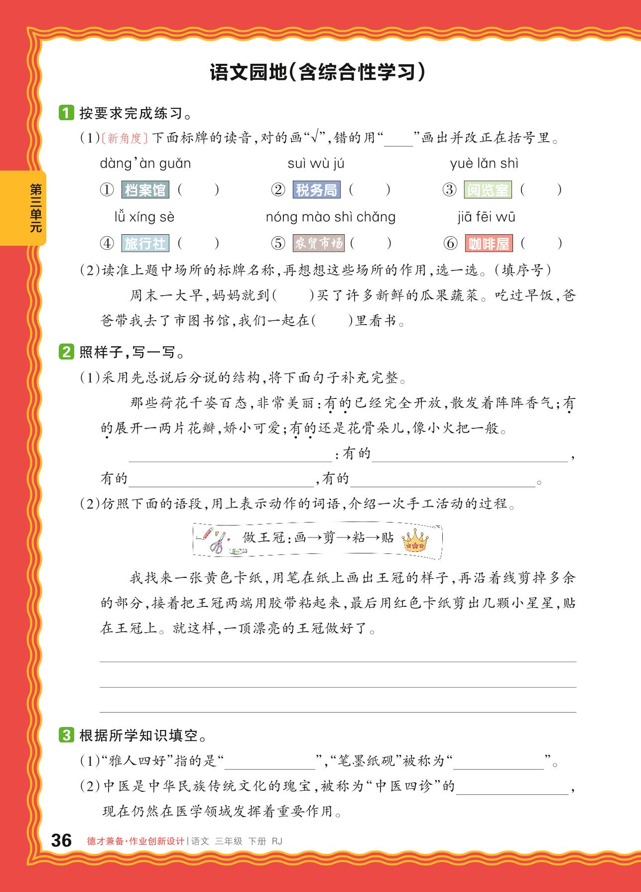2024春下册三年级语文人教版 第三单元 中华优秀传统文化——语文园地(含综合性学习)