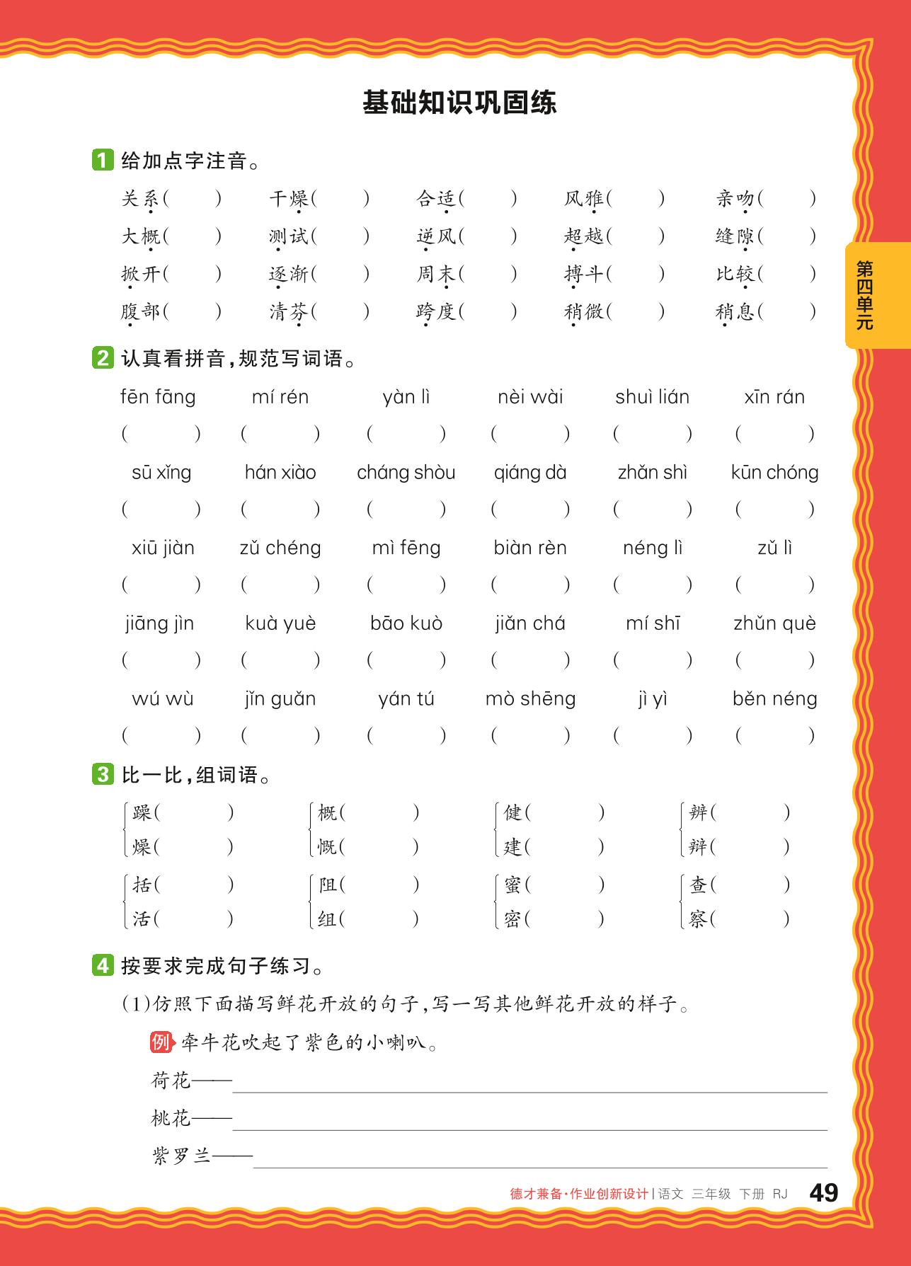 2024春下册三年级语文人教版 第四单元 观察与发现——基础知识巩固练