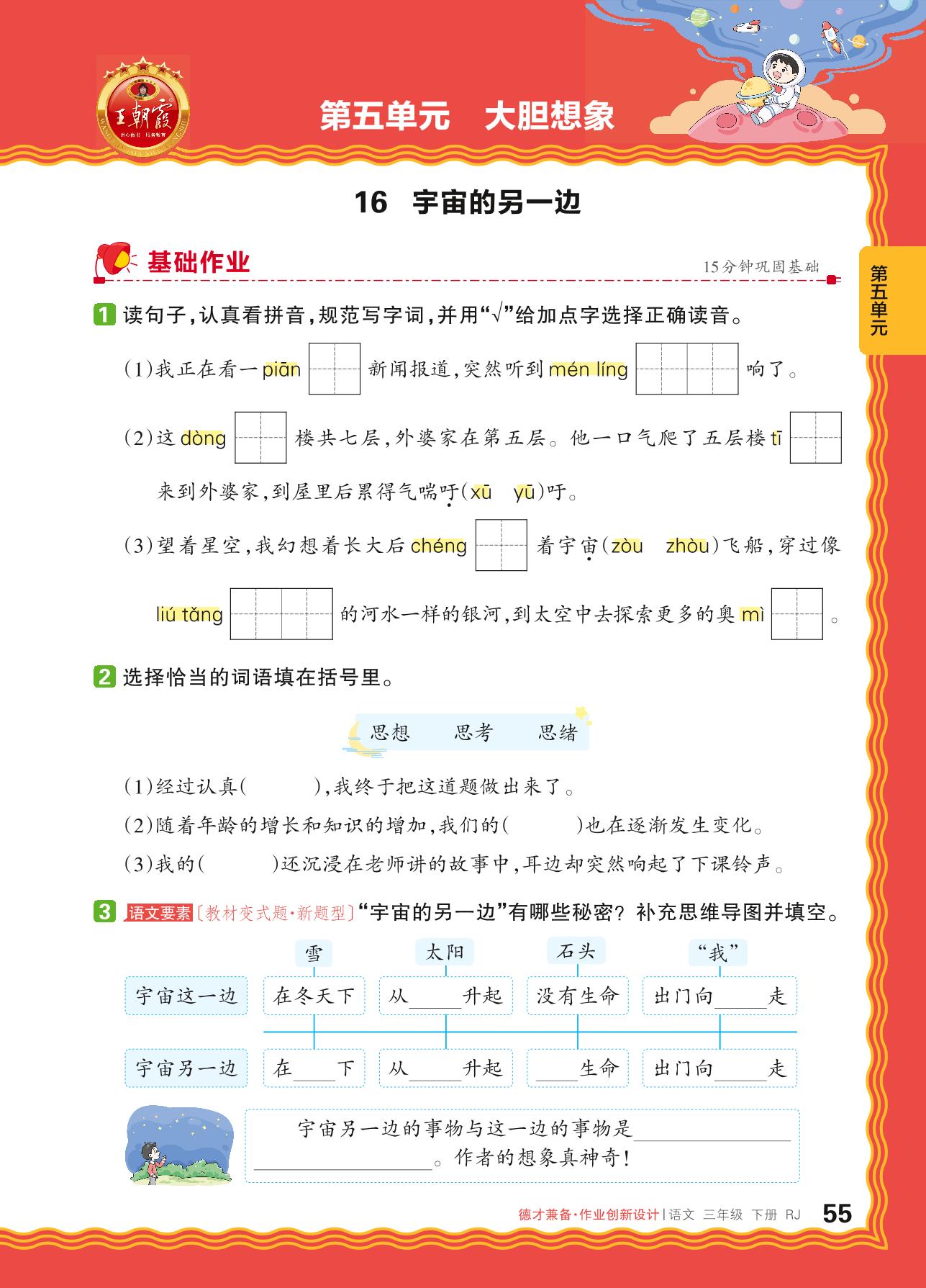 2024春下册三年级语文人教版 第五单元 大胆想象——16. 宇宙的另一边