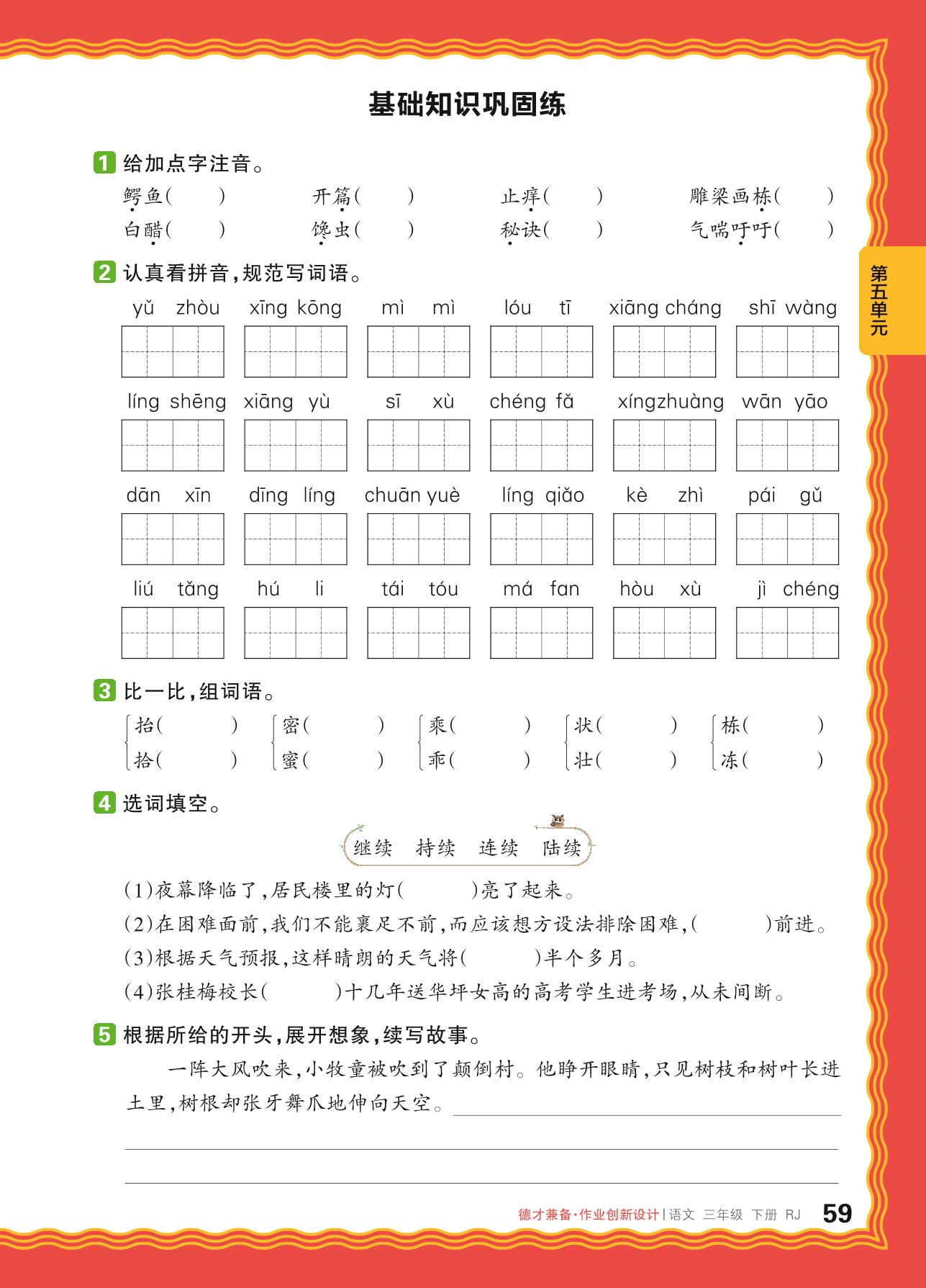 2024春下册三年级语文人教版 第五单元 大胆想象——基础知识巩固练