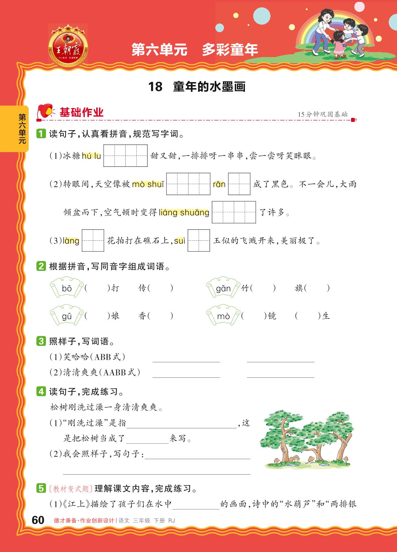 2024春下册三年级语文人教版 第六单元 多彩童年——18. 童年的水墨画