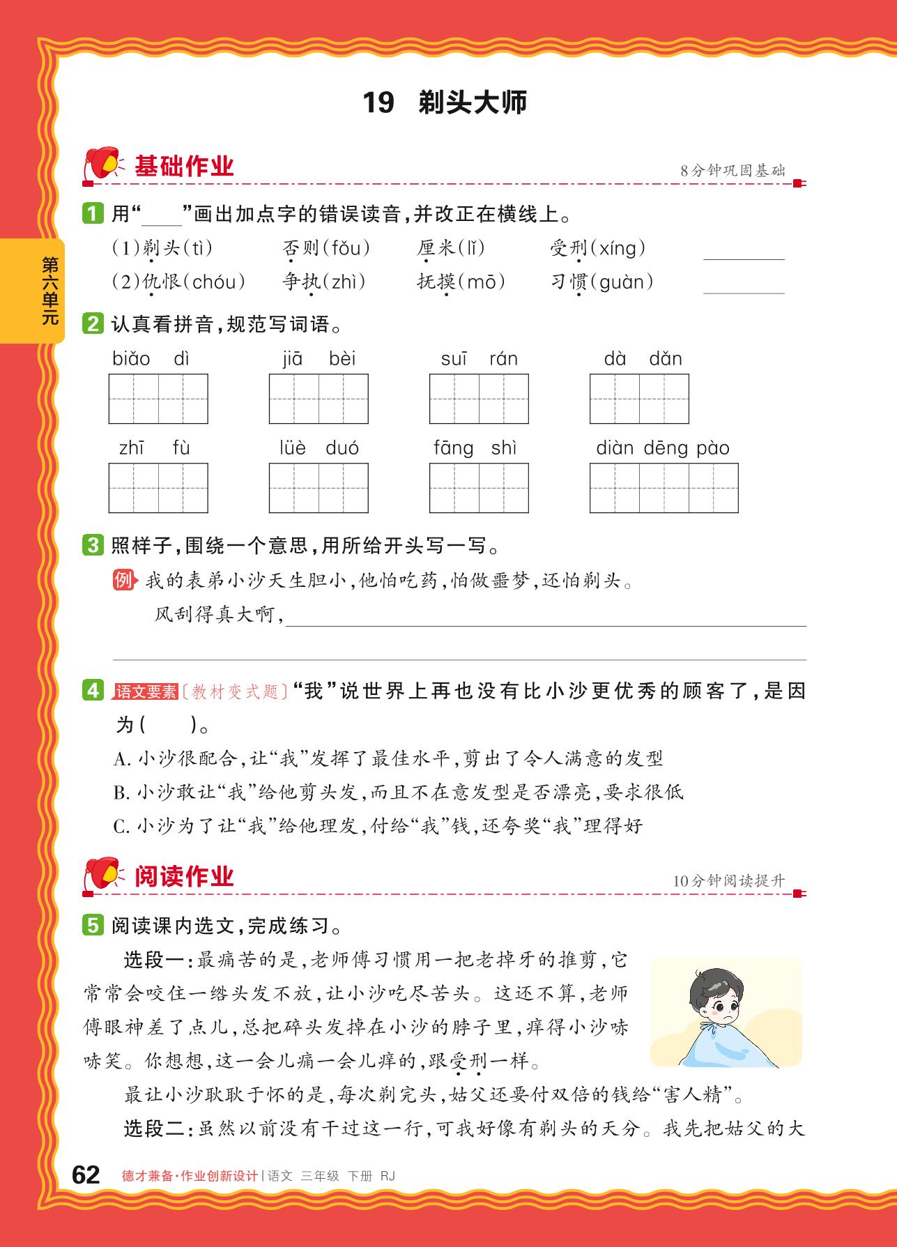 2024春下册三年级语文人教版 第六单元 多彩童年——19. 剃头大师