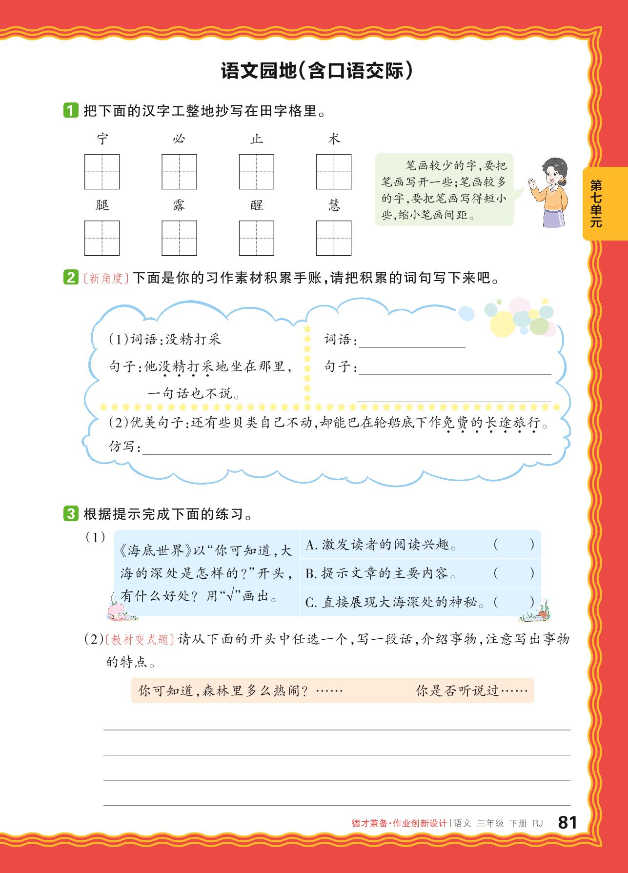 2024春下册三年级语文人教版 第七单元 奇妙的世界——语文园地(含口语交际)