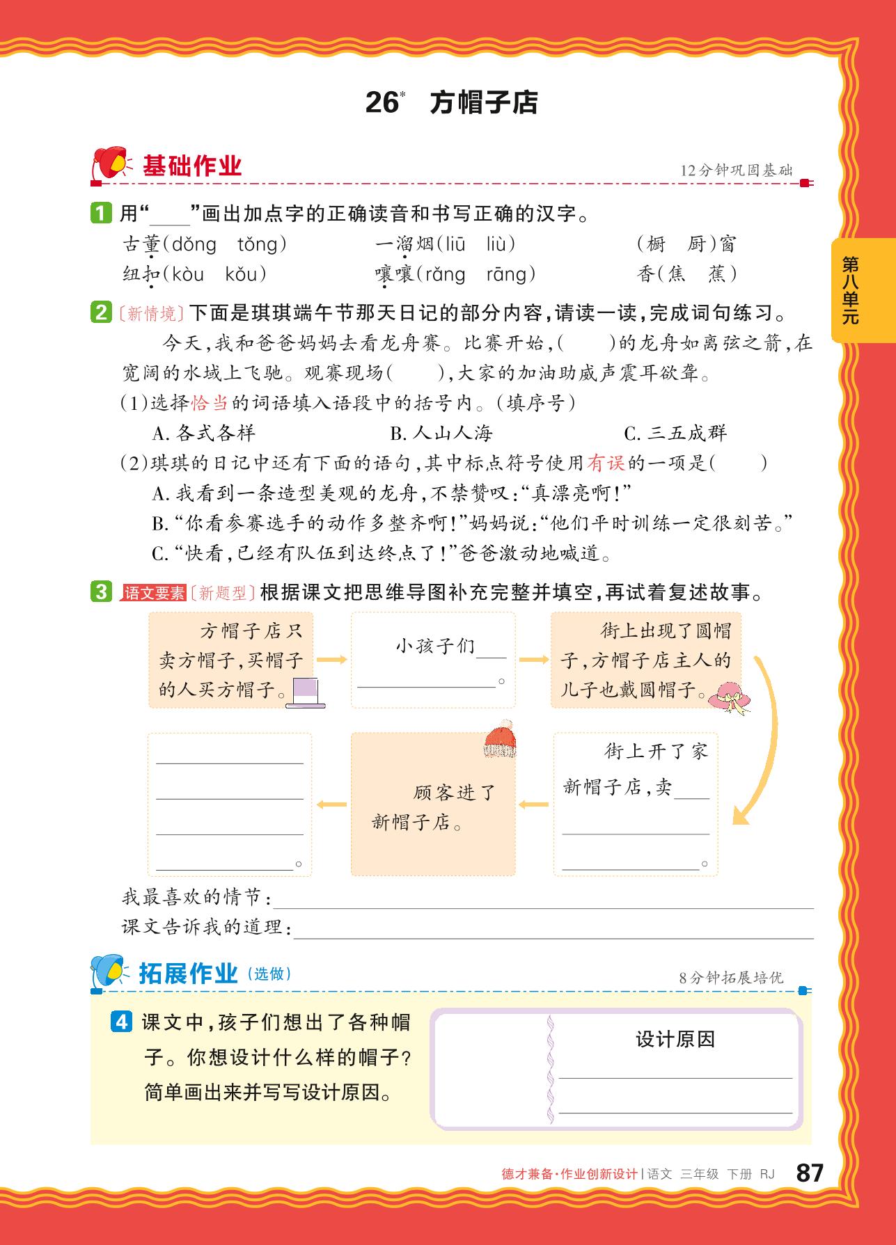 2024春下册三年级语文人教版 第八单元 有趣的故事——26. 方帽子店