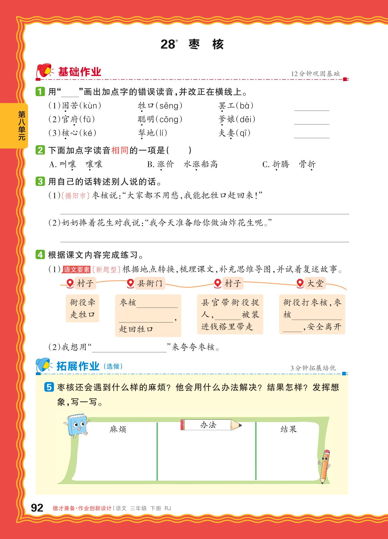 2024春下册三年级语文人教版 第八单元 有趣的故事——28. 枣核
