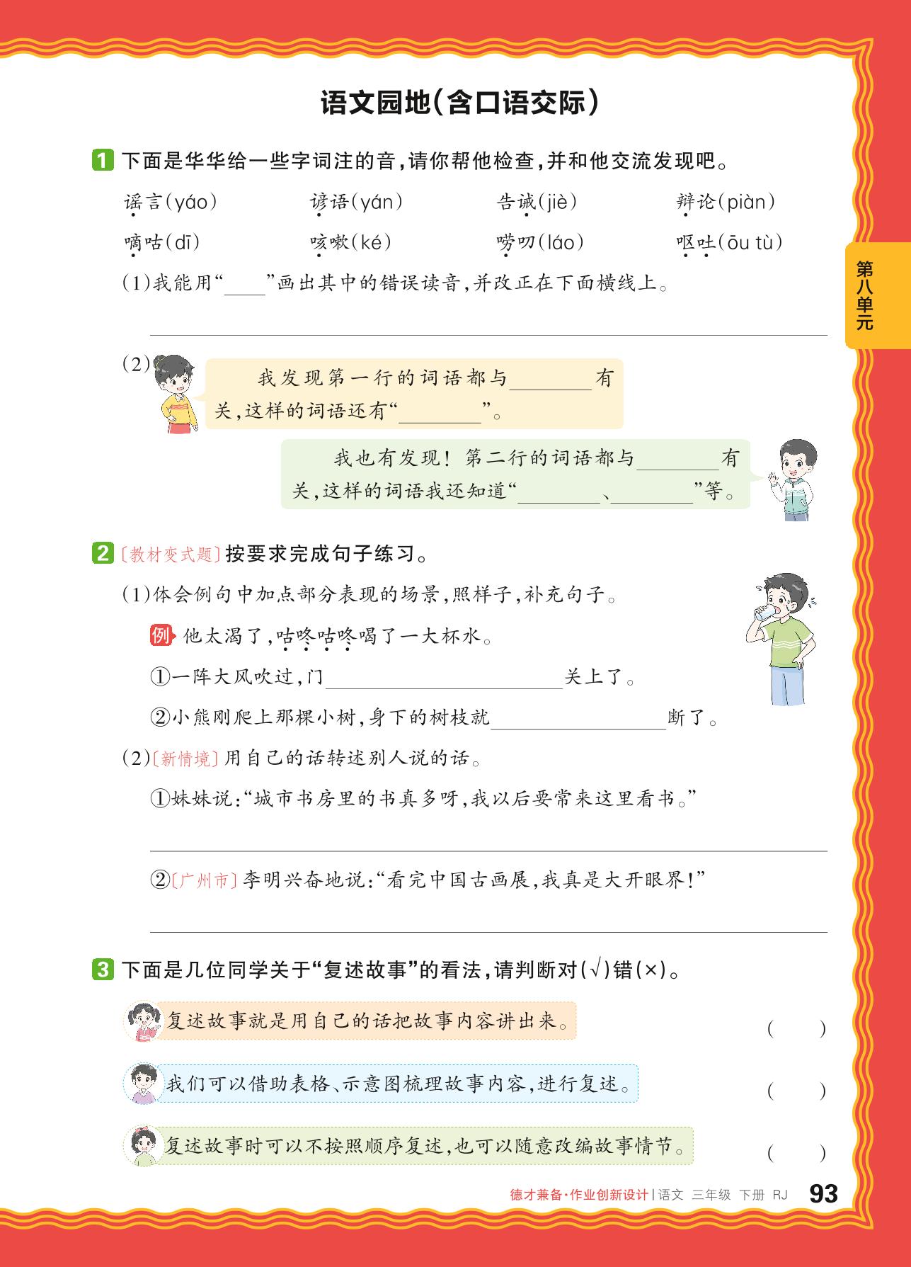 2024春下册三年级语文人教版 第八单元 有趣的故事——语文园地(含口语交际)
