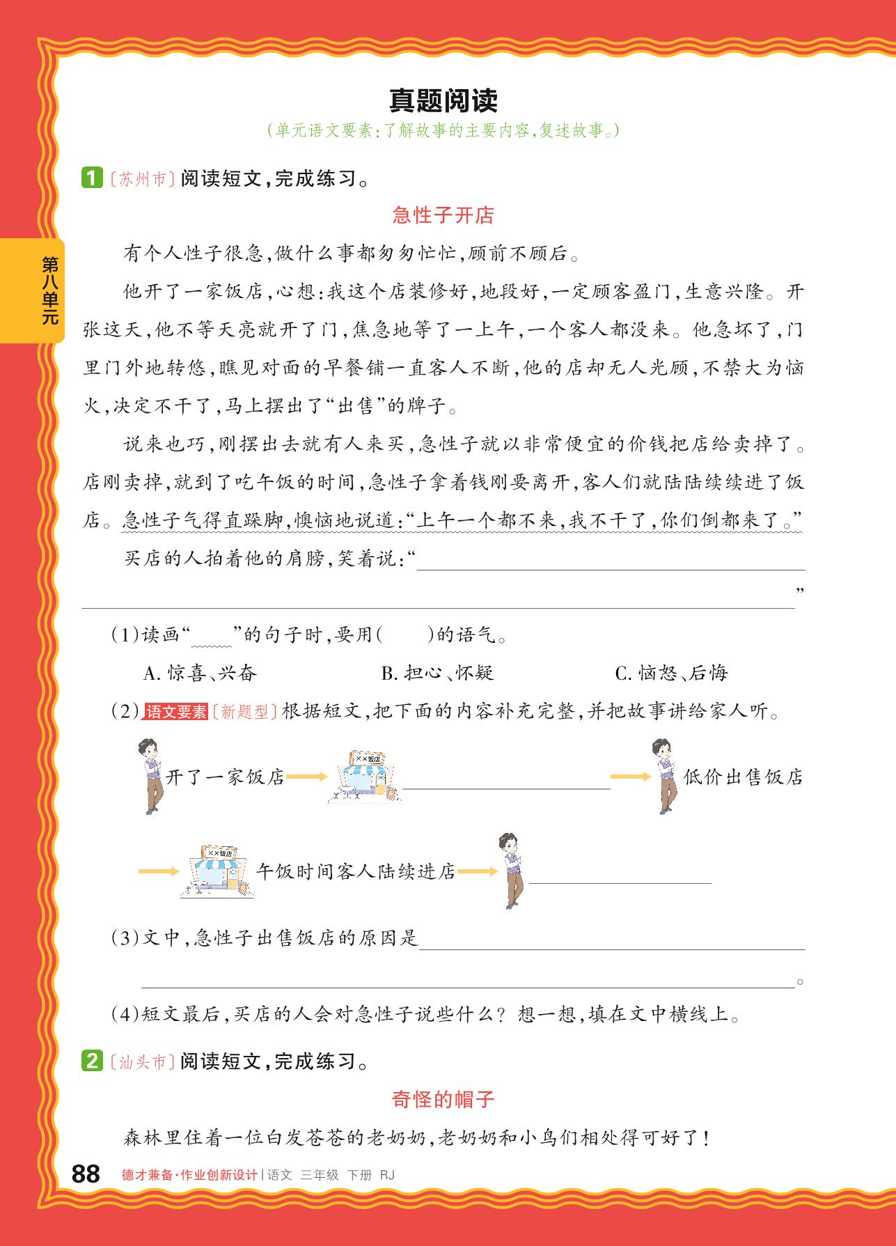 2024春下册三年级语文人教版 第八单元 有趣的故事——真题阅读