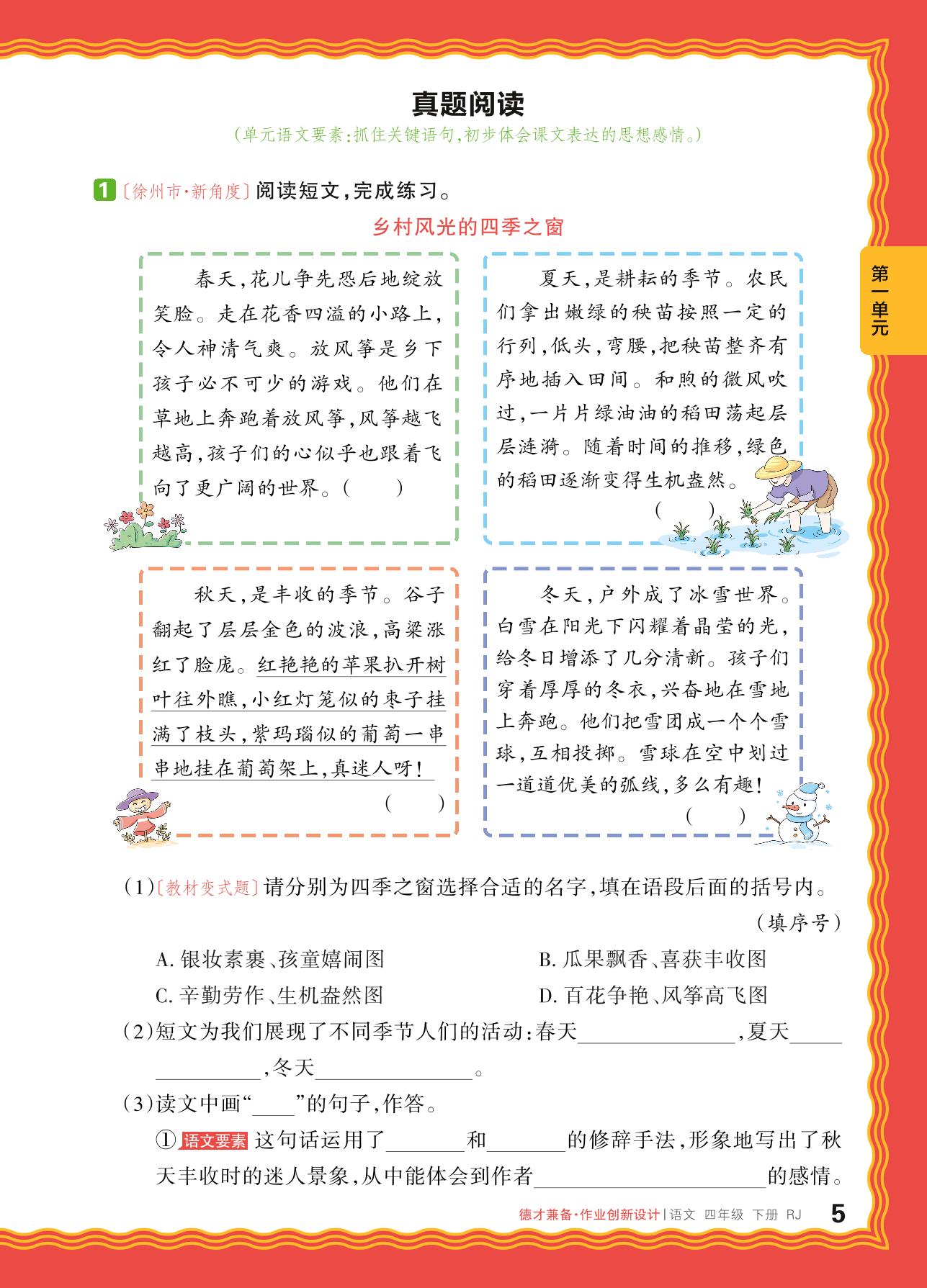 2024春下册四年级语文人教版 第一单元 乡村生活——真题阅读