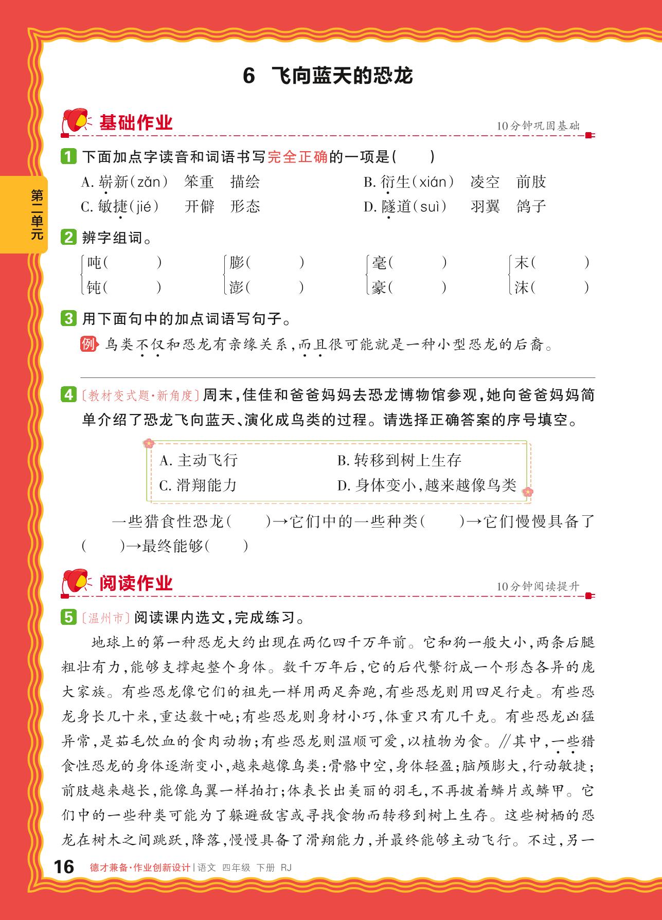 2024春下册四年级语文人教版 第二单元 自然、科技——6. 飞向蓝天的恐龙