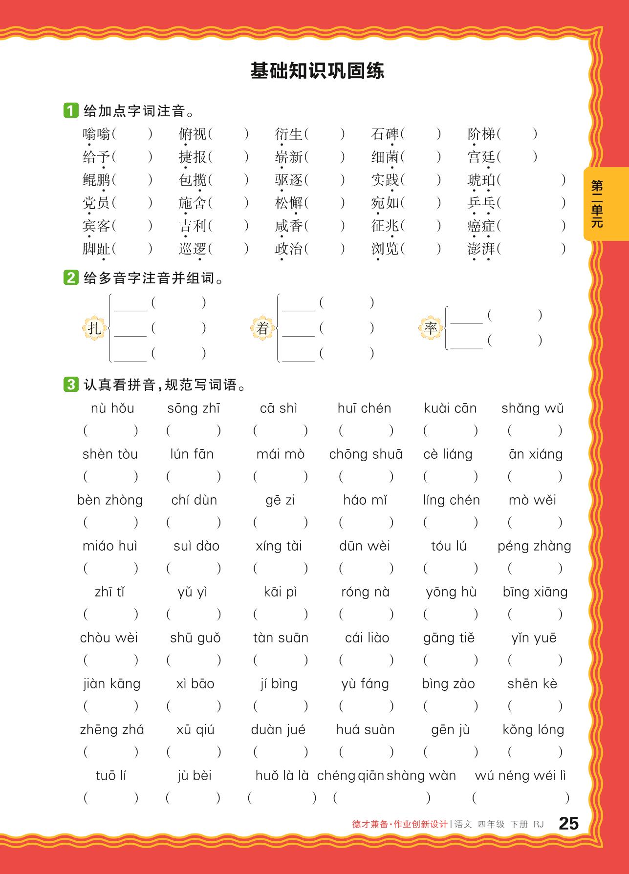 四年级语文人教版下册单元卷