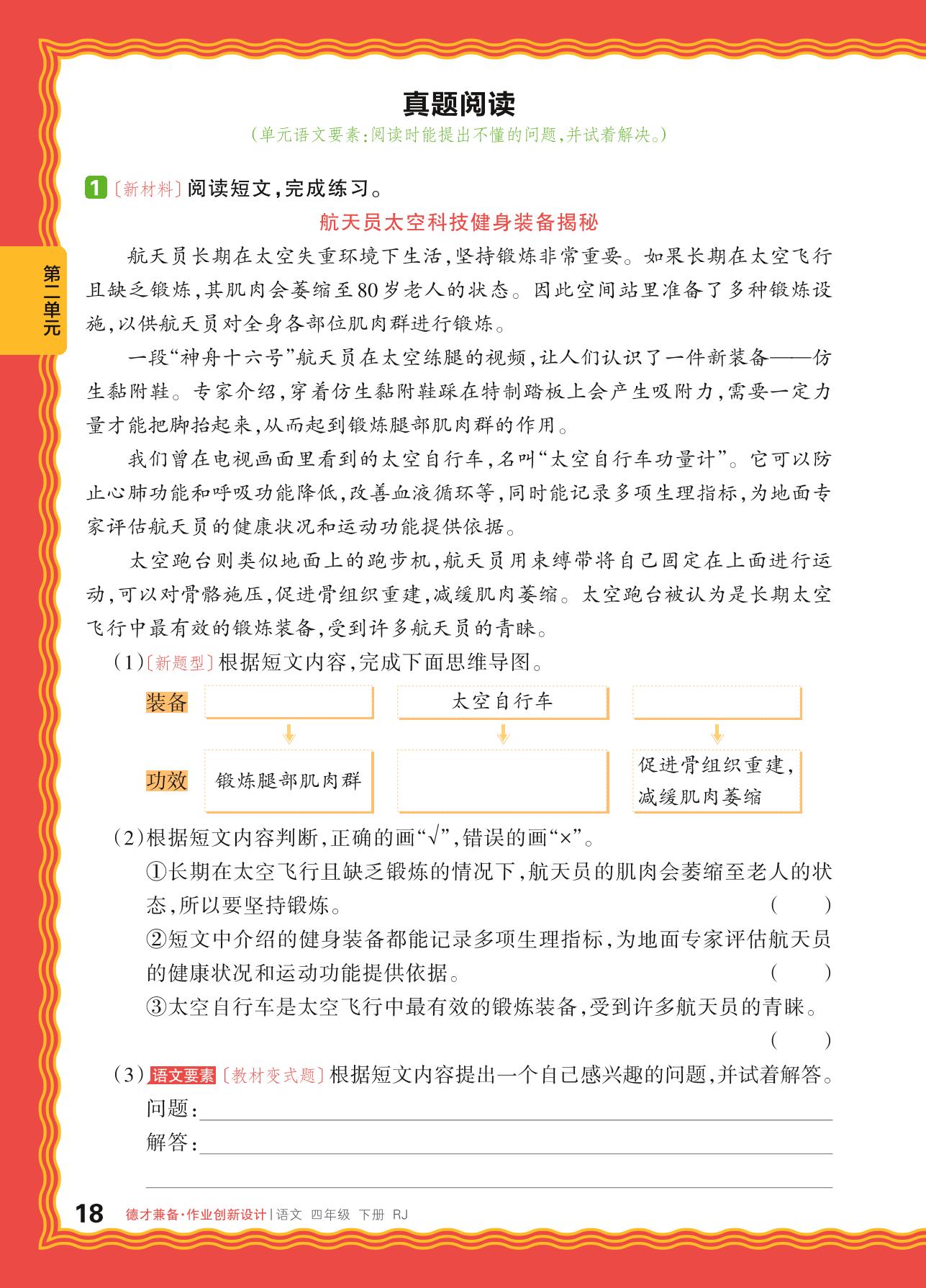 2024春下册四年级语文人教版 第二单元 自然、科技——真题阅读