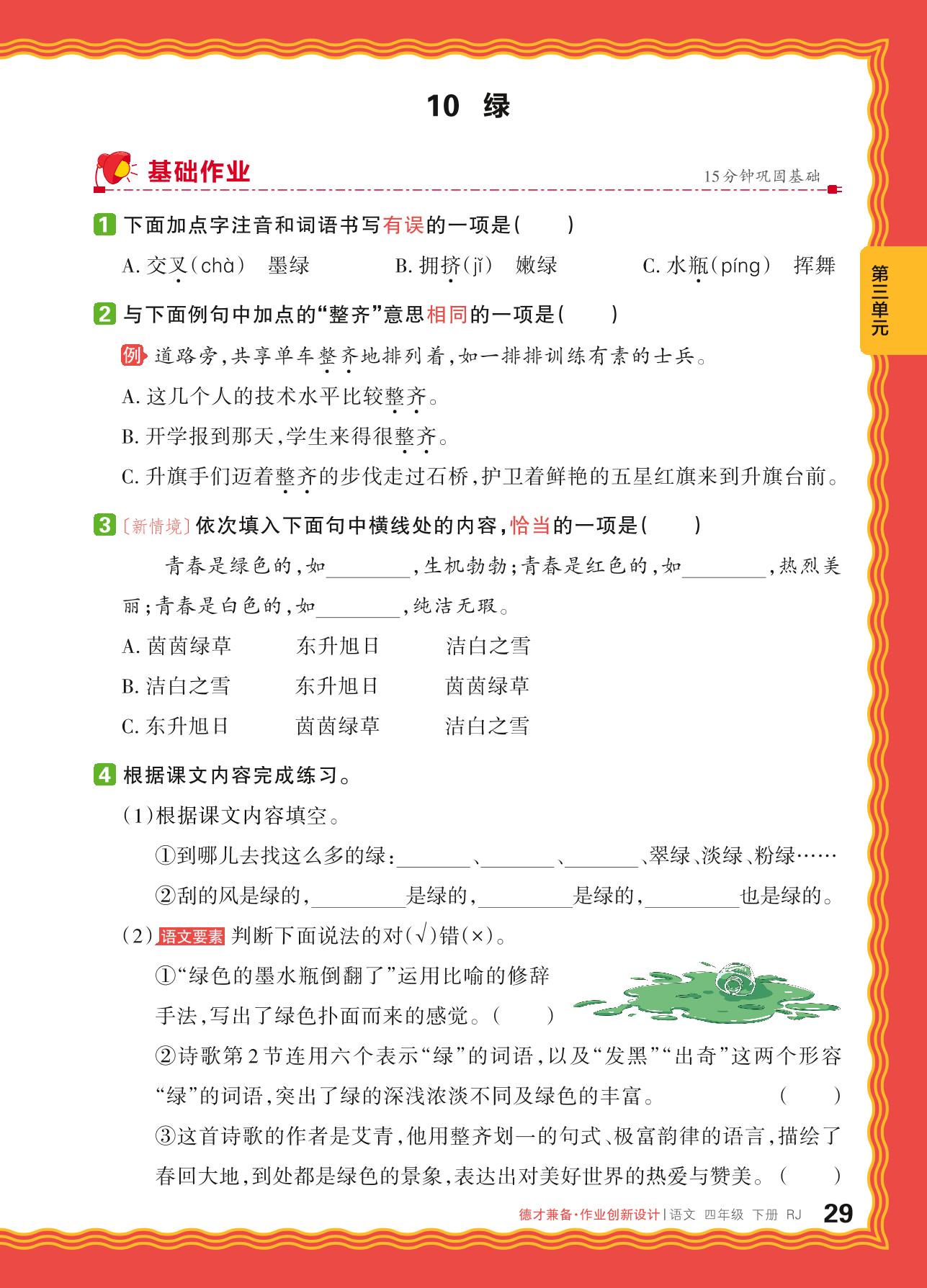 2024春下册四年级语文人教版 第三单元 现代诗歌——10. 绿