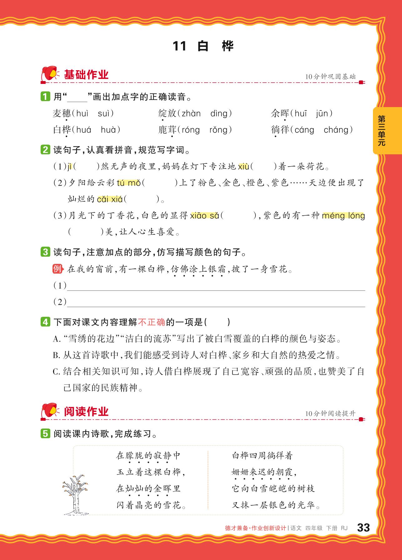 2024春下册四年级语文人教版 第三单元 现代诗歌——11. 白桦