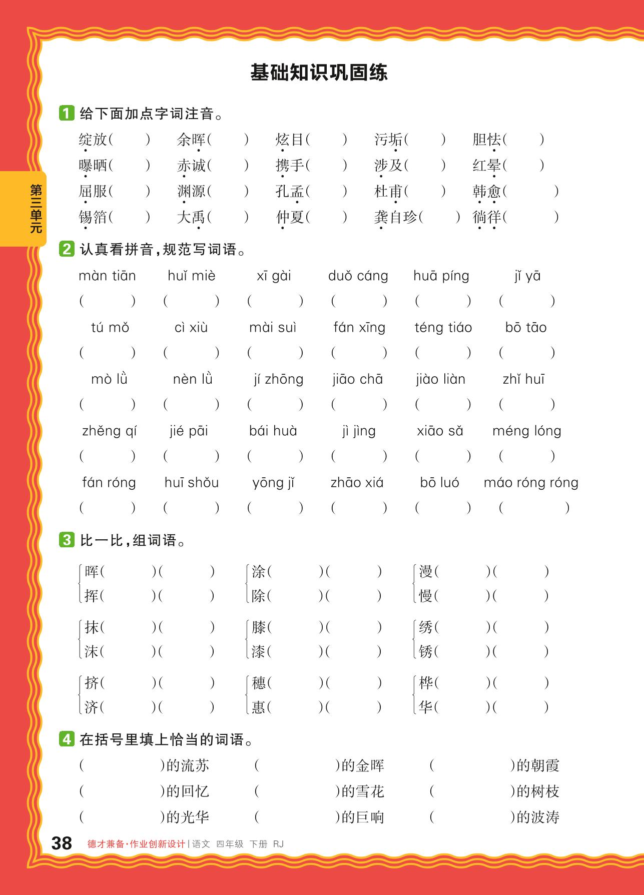2024春下册四年级语文人教版 第三单元 现代诗歌——基础知识巩固练