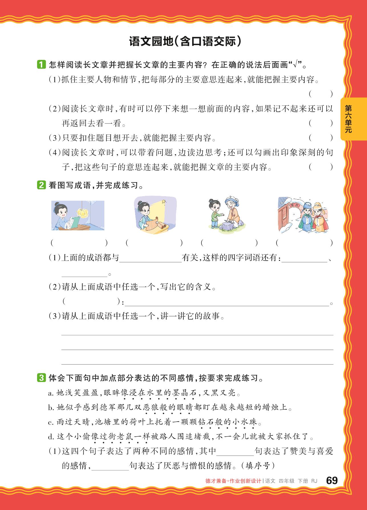 2024春下册四年级语文人教版 第六单元 成长——语文园地(含口语交际)