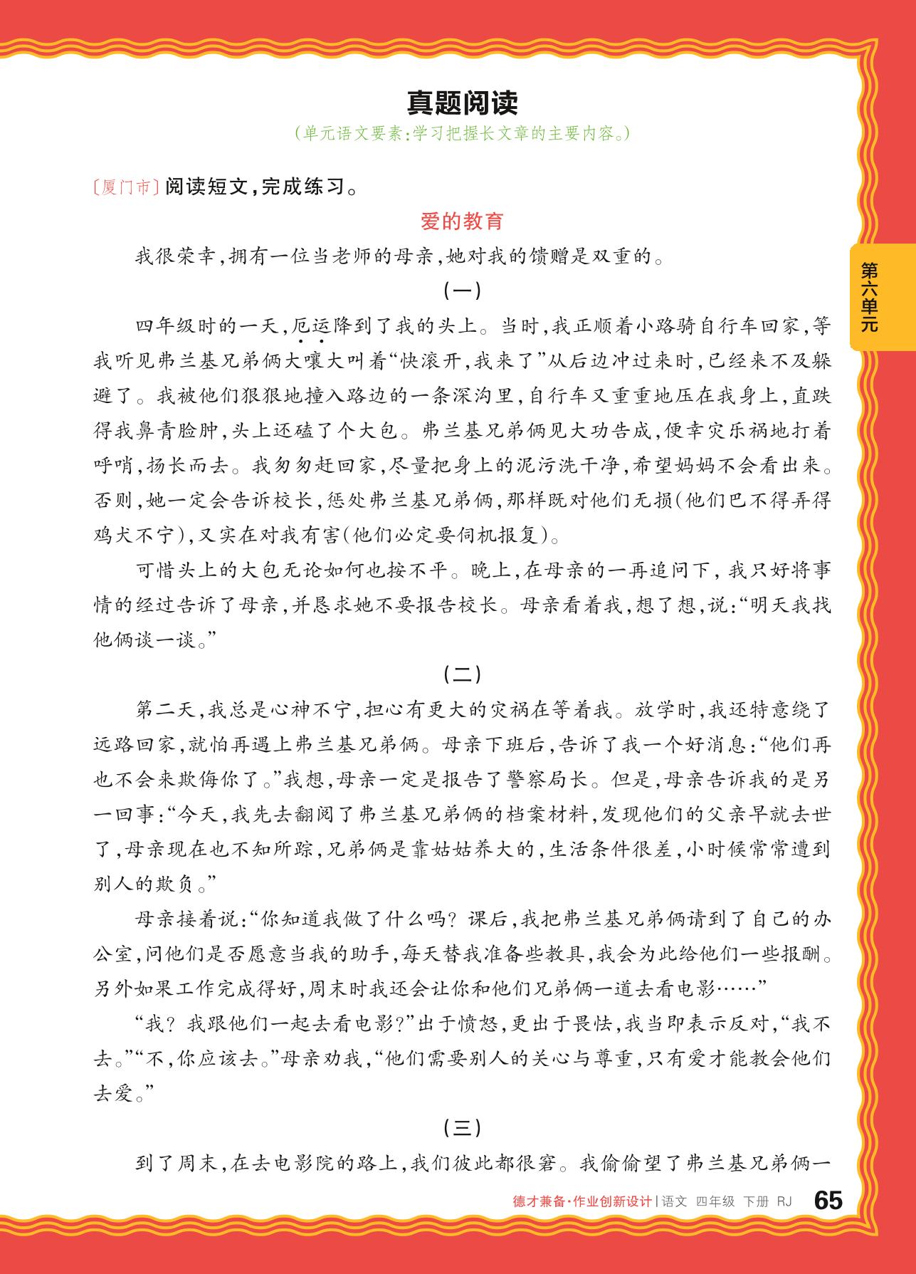 2024春下册四年级语文人教版 第六单元 成长——真题阅读