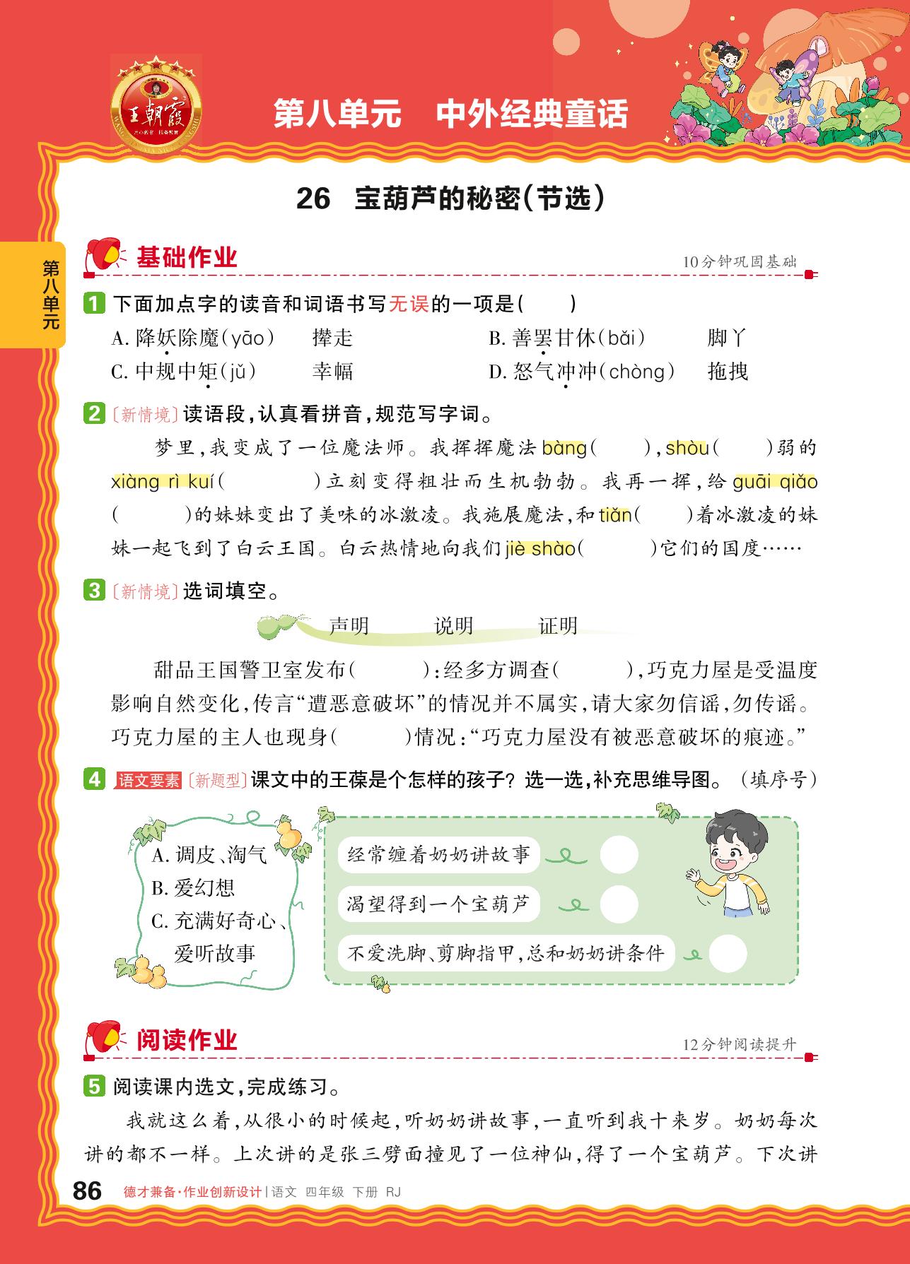 2024春下册四年级语文人教版 第八单元 中外经典童话——26. 宝葫芦的秘密(节选)