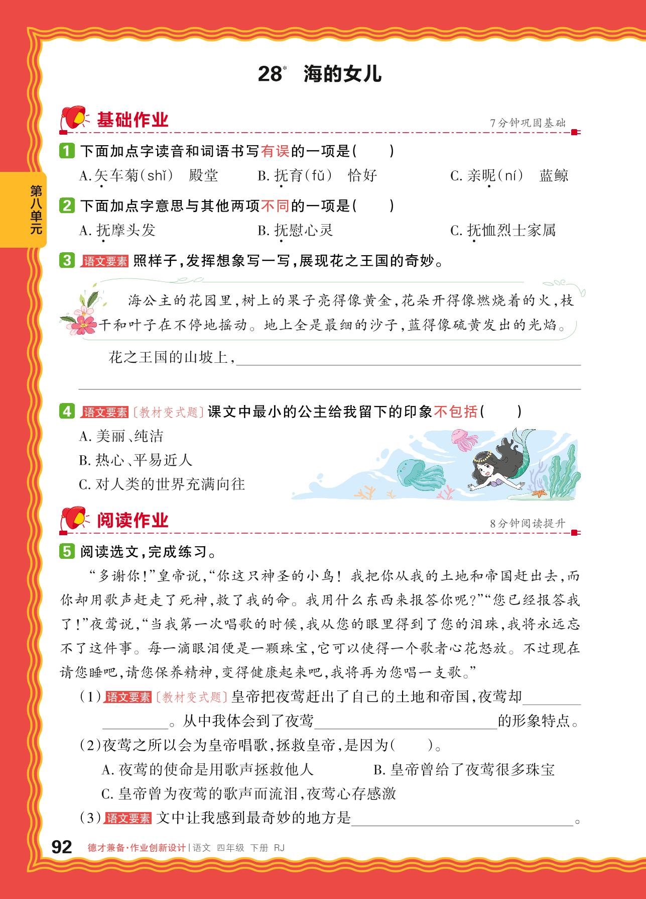 2024春下册四年级语文人教版 第八单元 中外经典童话——28. 海的女儿