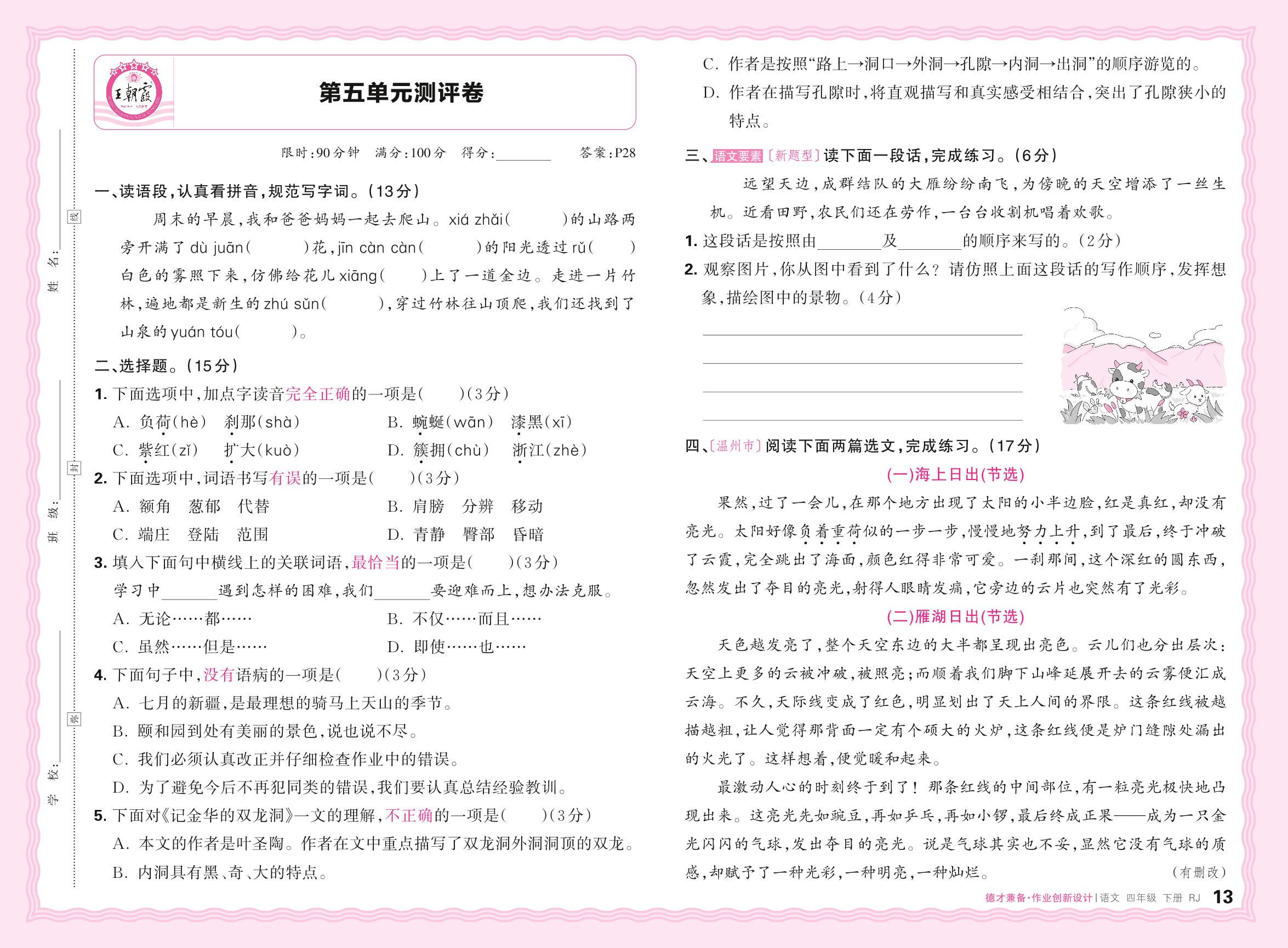 四年级语文人教版下册单元卷